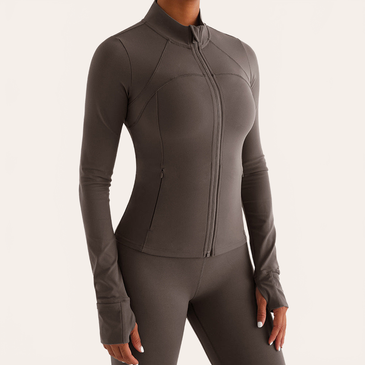 Das weiche, atmungsaktive gebürstete Material fördert die Feuchtigkeitsaufnahme und begleitet jede Bewegung fließend. Der Reißverschluss und der strukturierte Kragen verleihen eine moderne Note, ideal für Yoga, sanftes Training oder den täglichen Athleisure-Look.