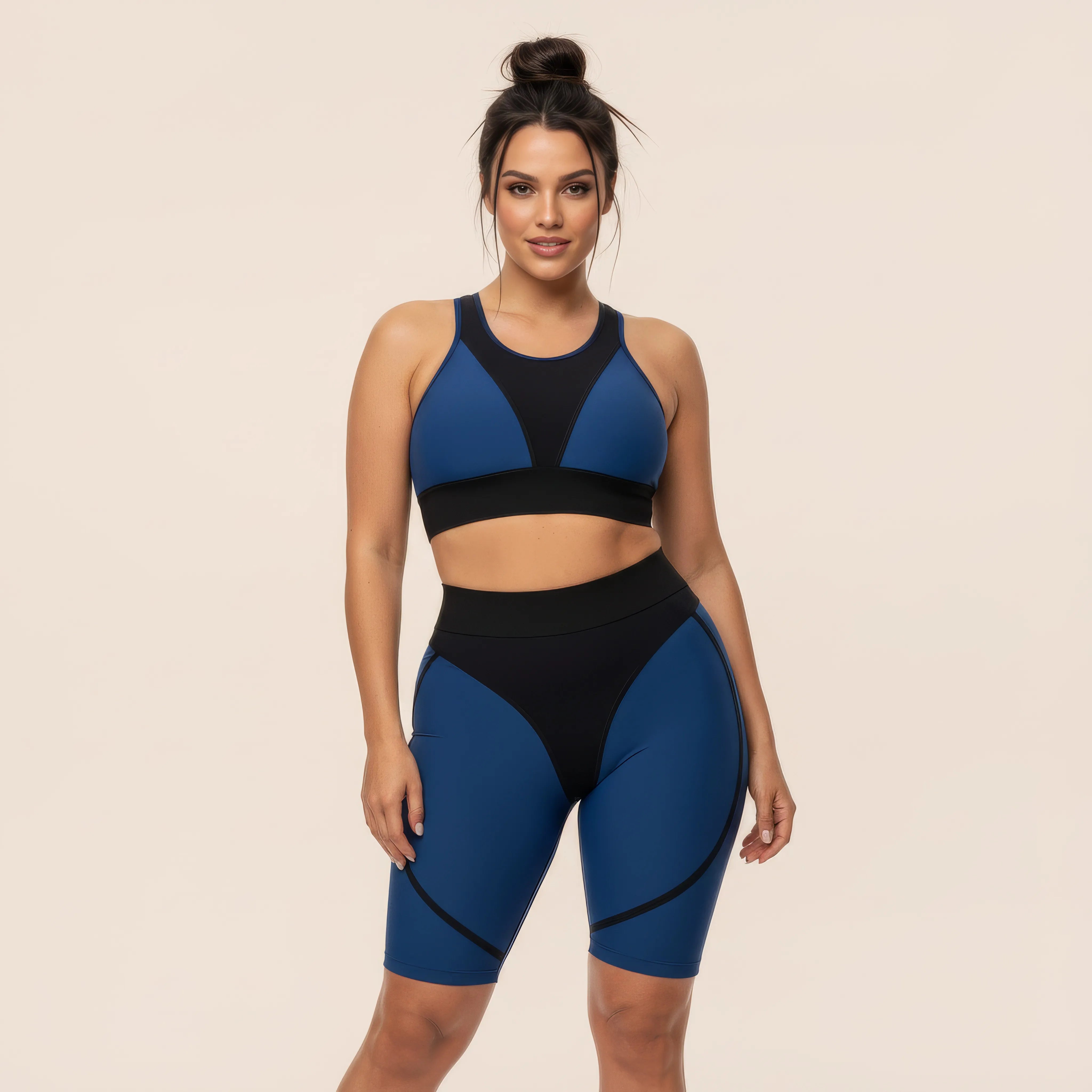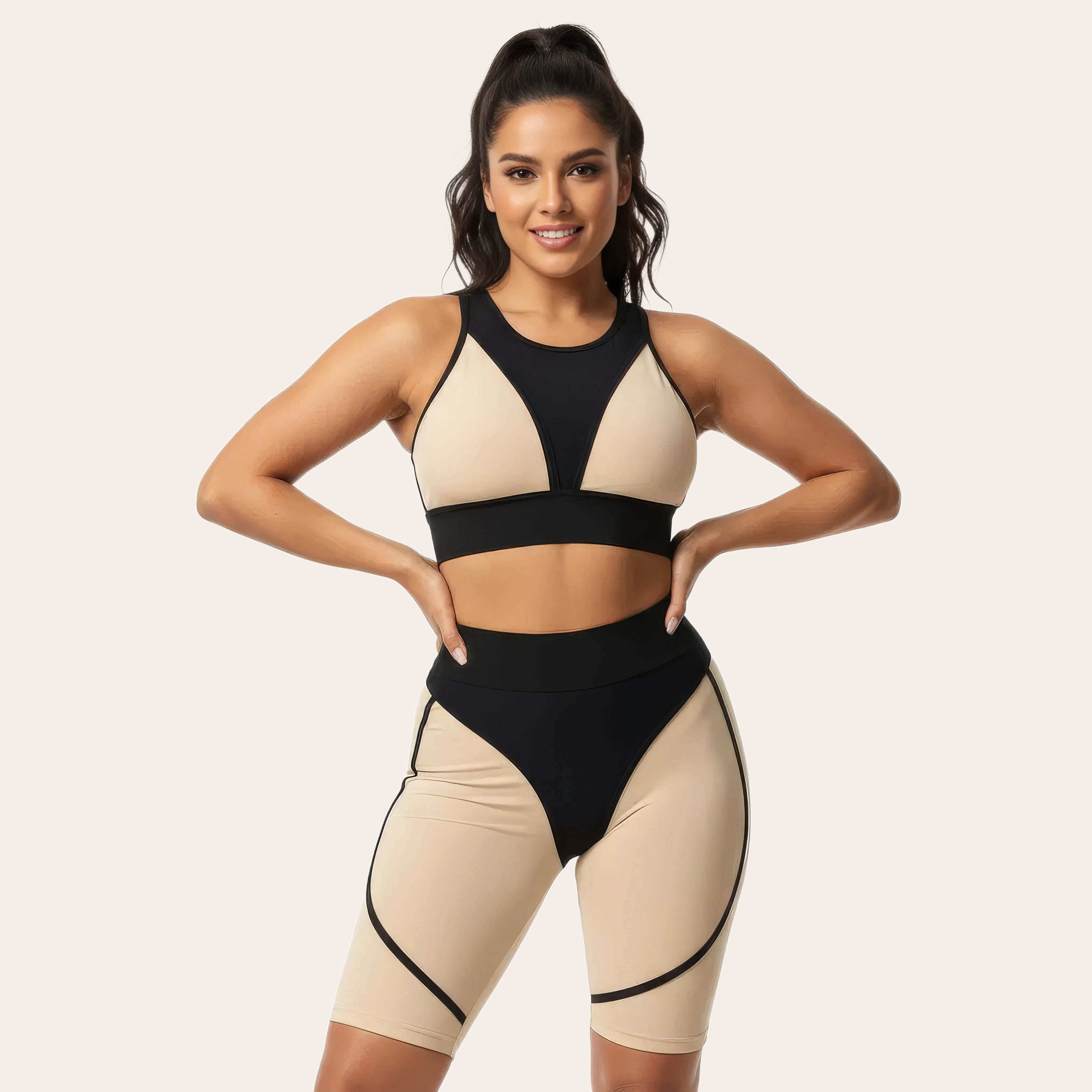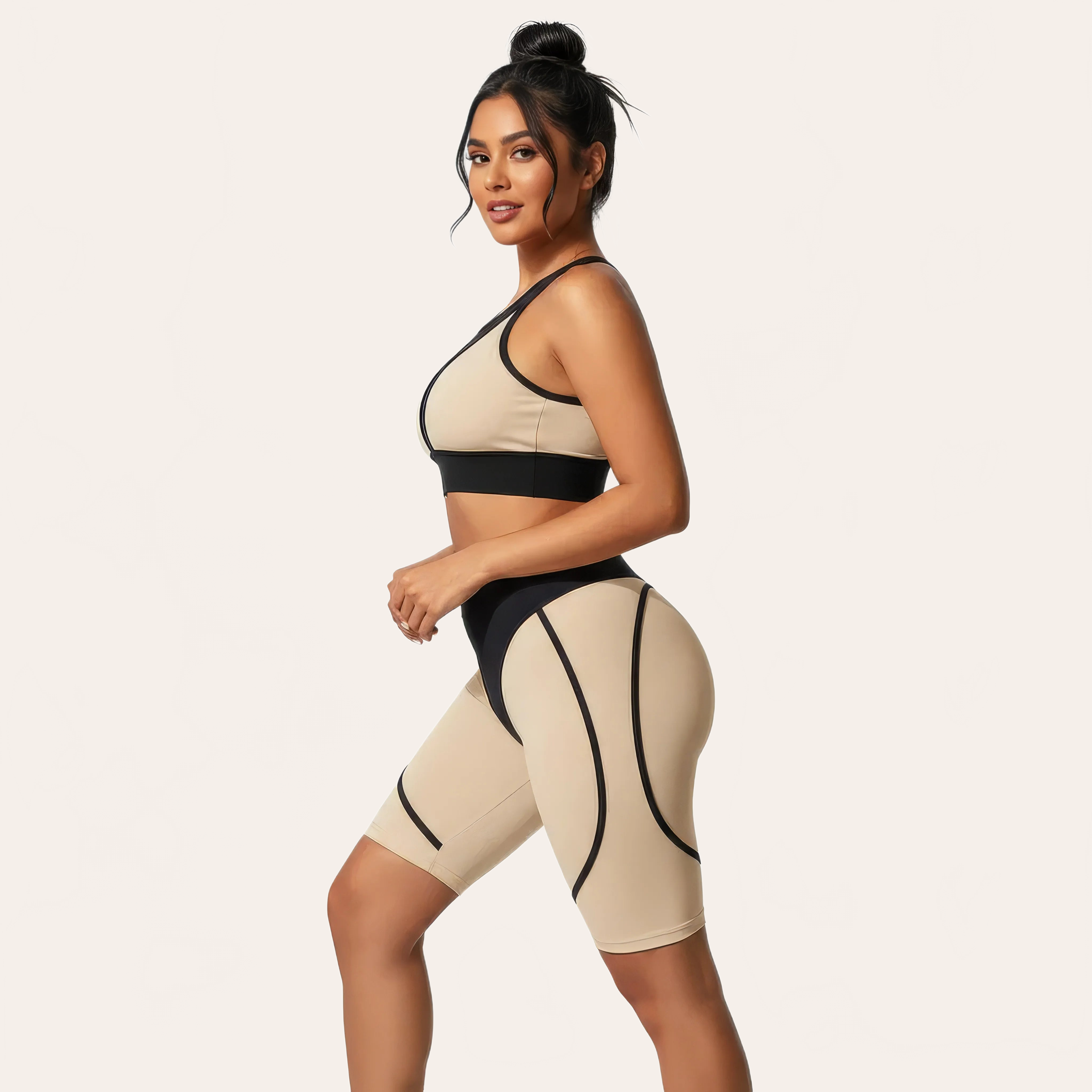 - Stil : Figurformendes Sportset (Sport-BH + Shorts).