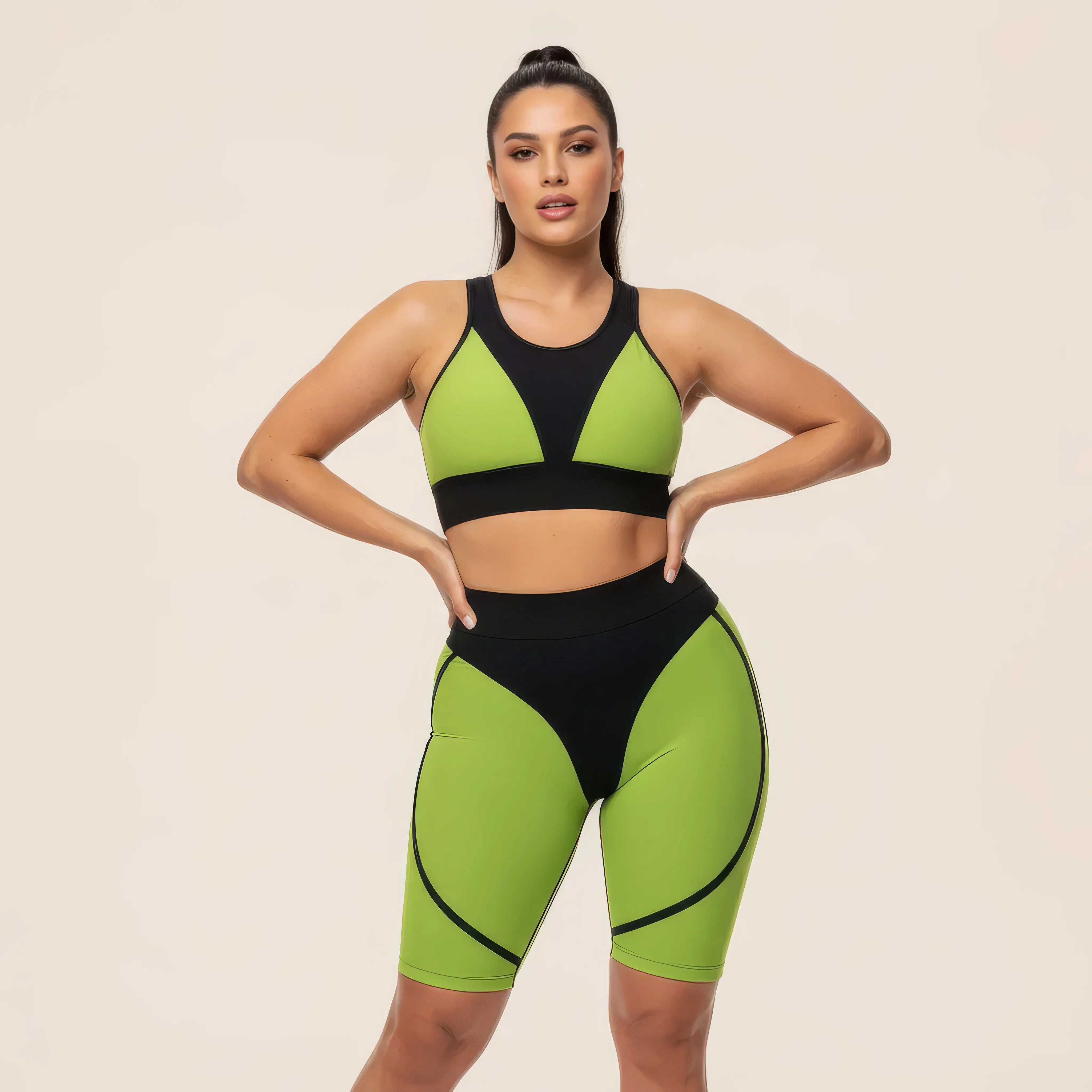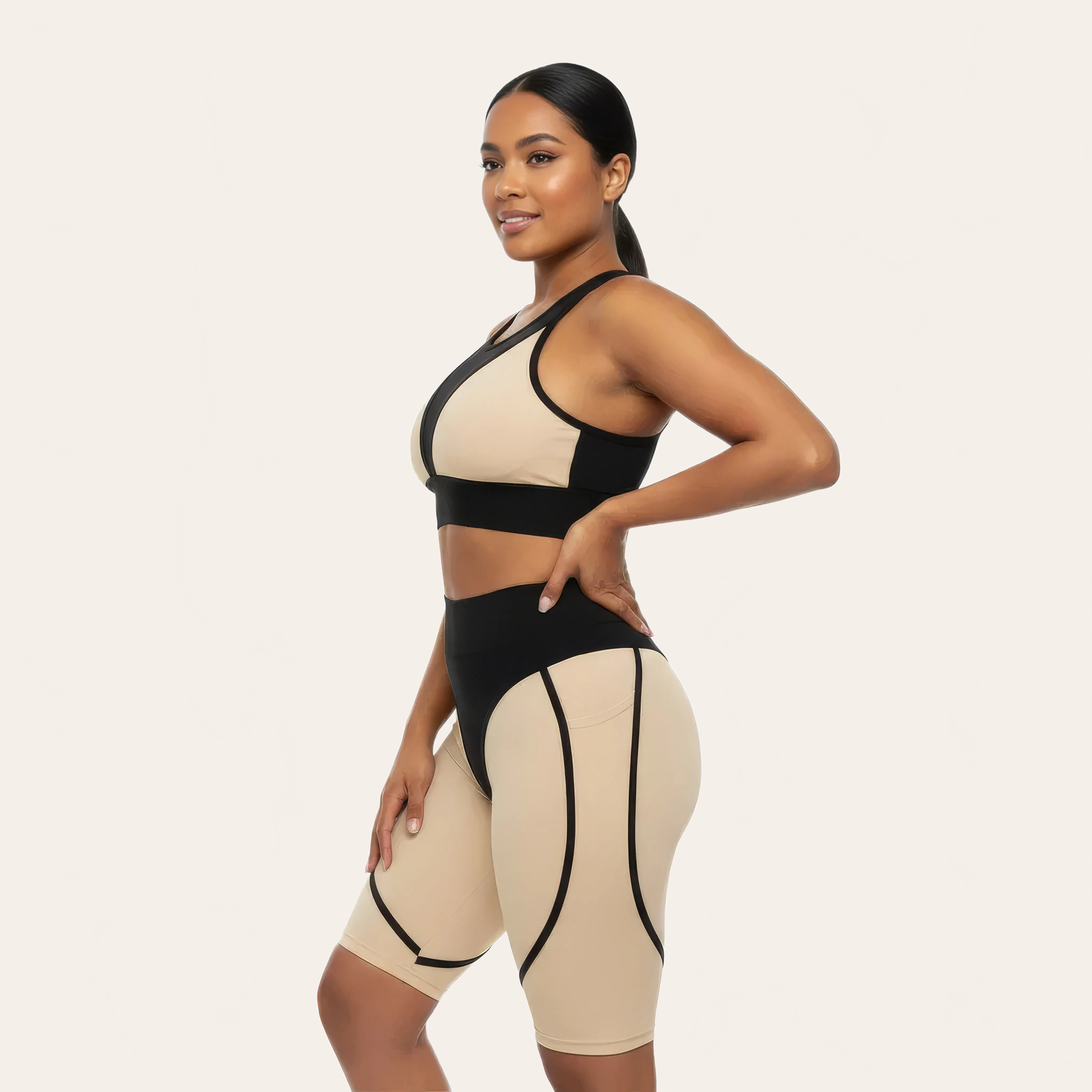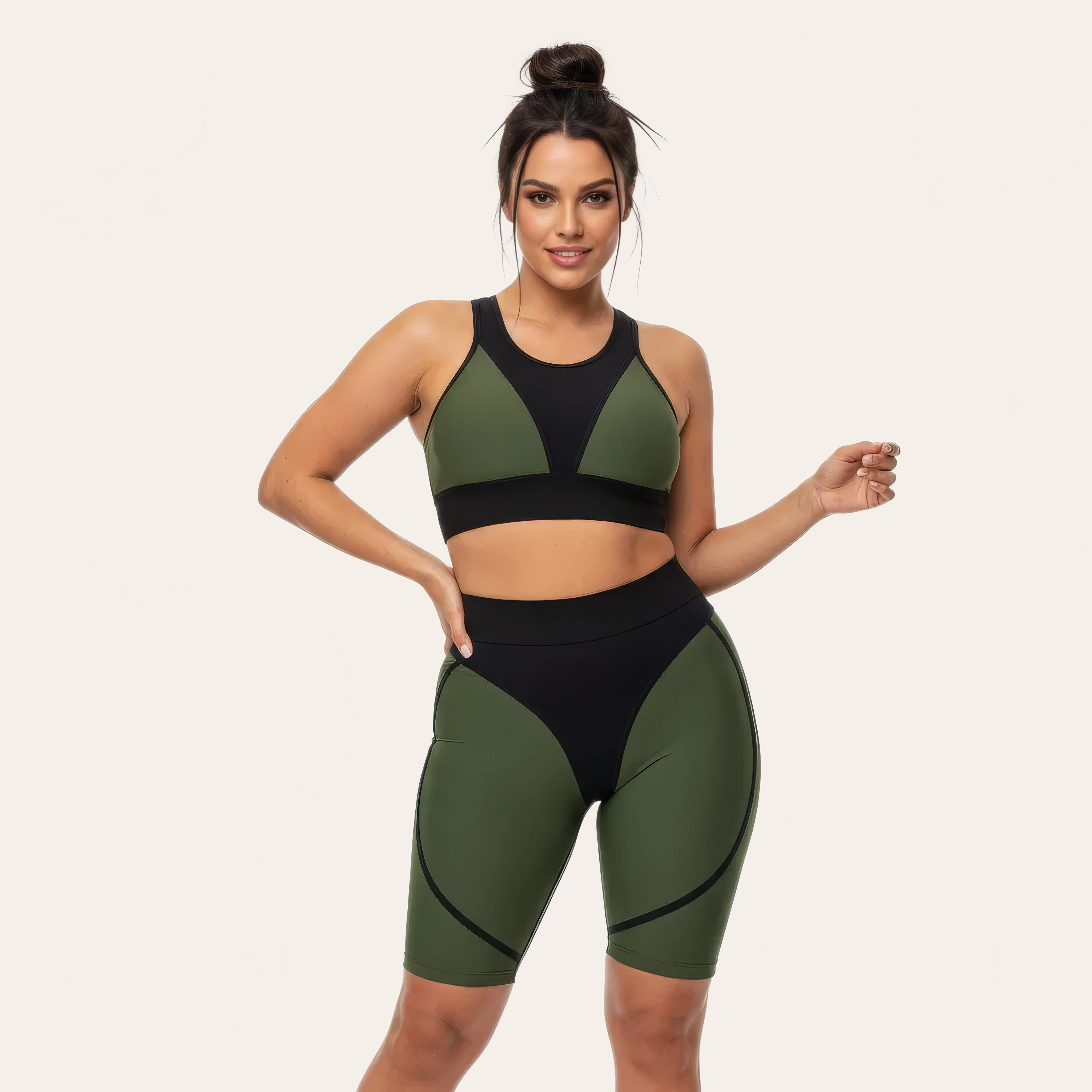 - Stil : Figurformendes Sportset (Sport-BH + Shorts).