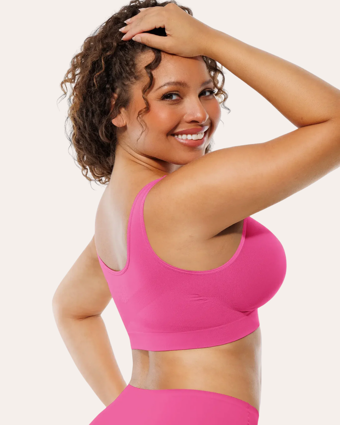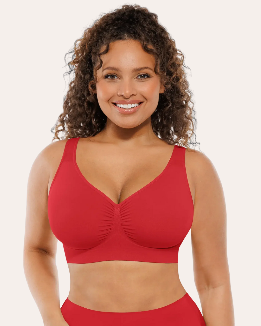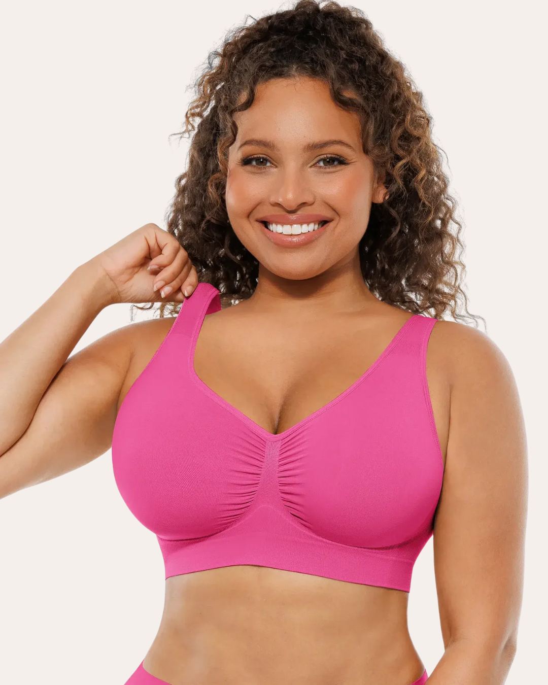 Ein nahtloser BH in großen Größen, der entwickelt wurde, um ein perfektes Gleichgewicht zwischen Halt und Komfort zu bieten. und Eleganz. Entwickelt, um üppige Brüste zu begleiten, bietet es zuverlässigen Halt ohne Bügel, während es die natürliche Form des Oberkörpers respektiert.