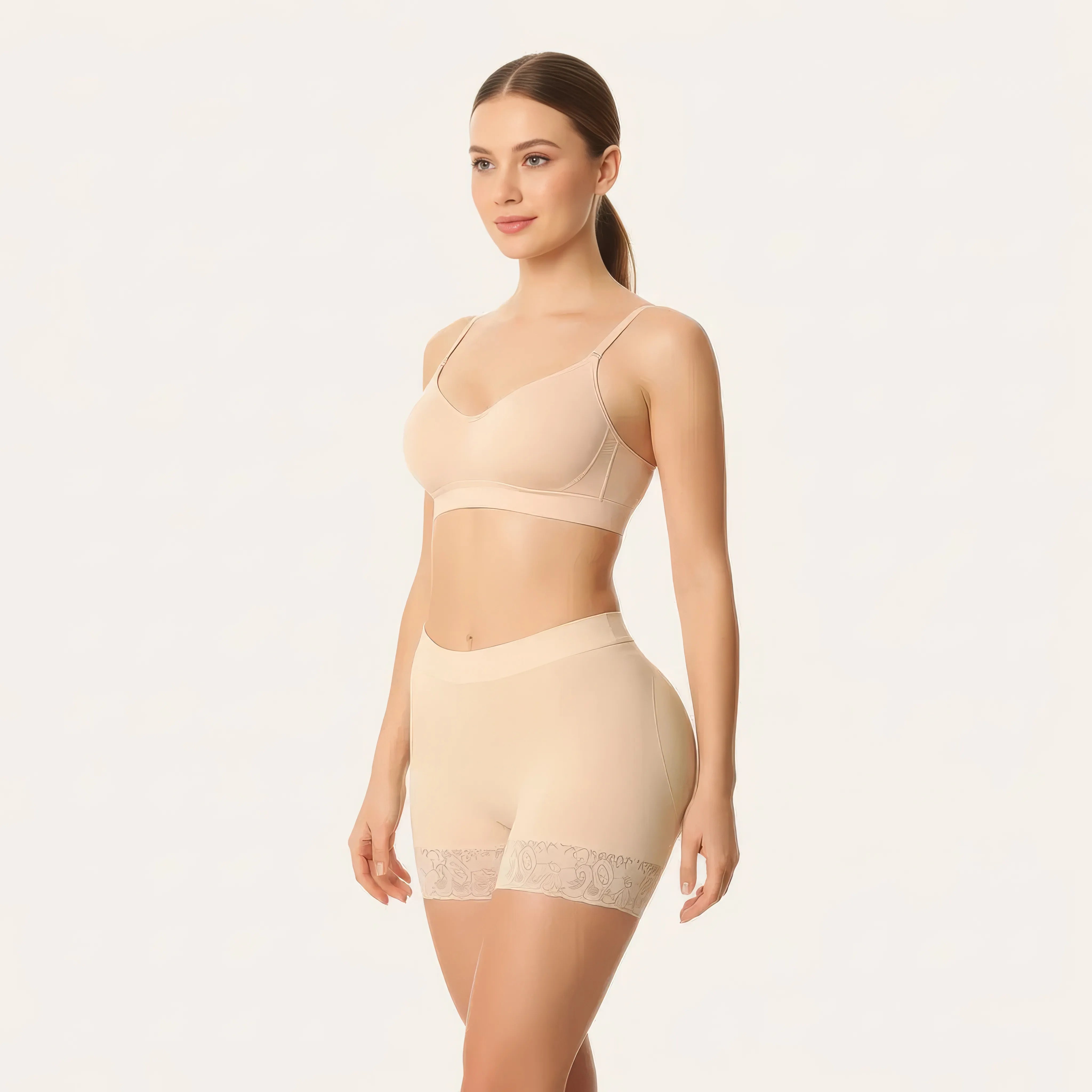 Von FEMORA entworfen, ist dieser formende Slip mit abnehmbaren Polstern darauf ausgelegt, die Kurven natürlich zu betonen. Seine ergonomische Struktur hebt den Po sofort an und glättet Taille und Hüften für eine harmonischere Silhouette.
