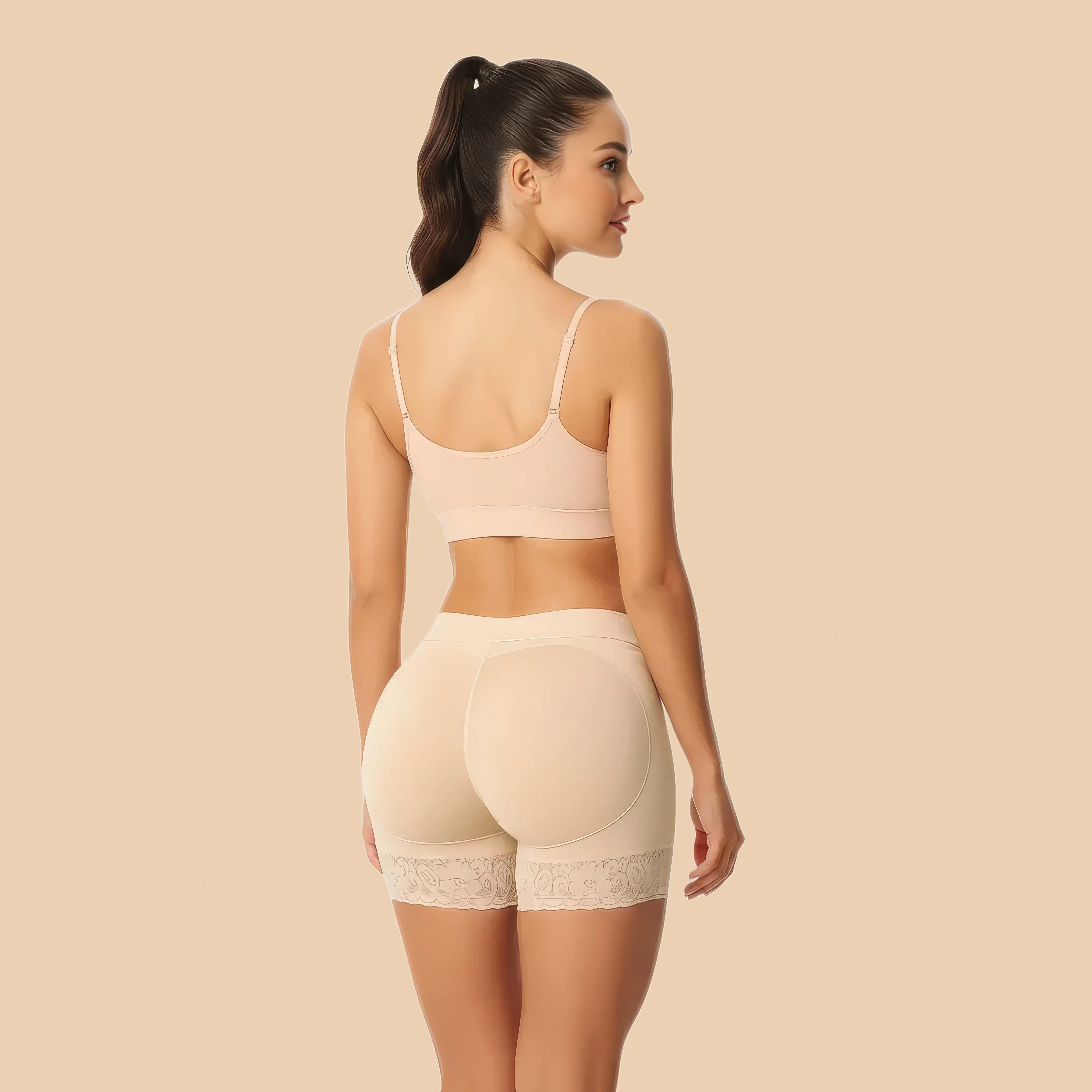 Die integrierten Polster können je nach gewünschtem Effekt entfernt oder angepasst werden, was eine maßgeschneiderte Betonung ermöglicht. Das weiche und formgebende Material umhüllt die Haut komfortabel und garantiert vollständige Unsichtbarkeit unter der Kleidung.
