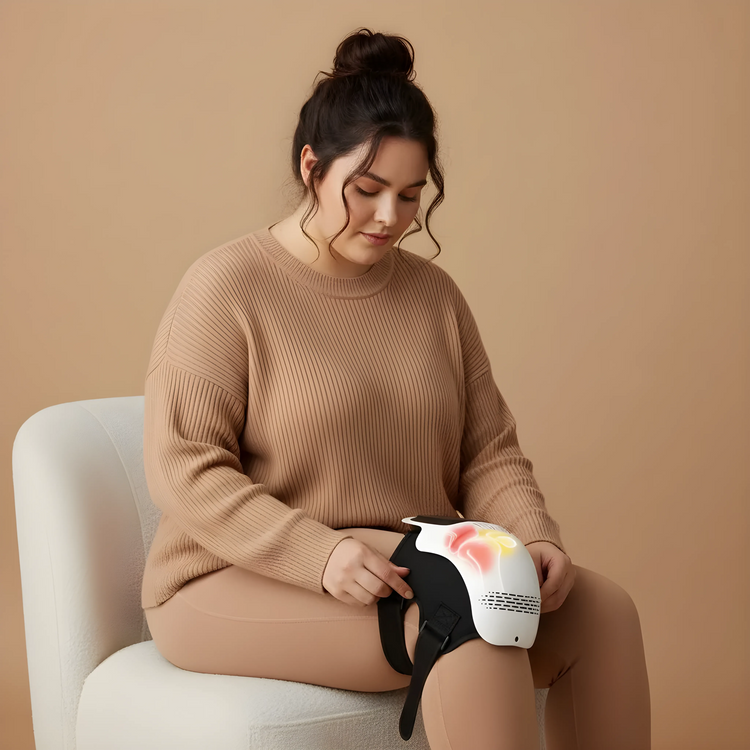 Der KneeTherma™ Femora ist ein intelligenter Massager, der entwickelt wurde, um Kniebeschwerden zu lindern. dank einer Kombination aus Vibrationsmassage, gezielter Wärme und Lichtstimulation. Es unterstützt die Gelenkerholung und fördert ein sofortiges Gefühl der Entspannung.