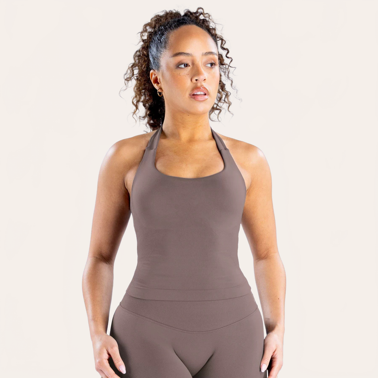 Seine nahtlose Verarbeitung sorgt für einen hautnahen Komfort ohne Reibung, während der Rückenausschnitt betont die Haltung und befreit die Bewegungen vollständig. Perfekt für Yoga, Pilates oder sanfte Workouts, lässt es sich auch im Alltag mühelos tragen.
