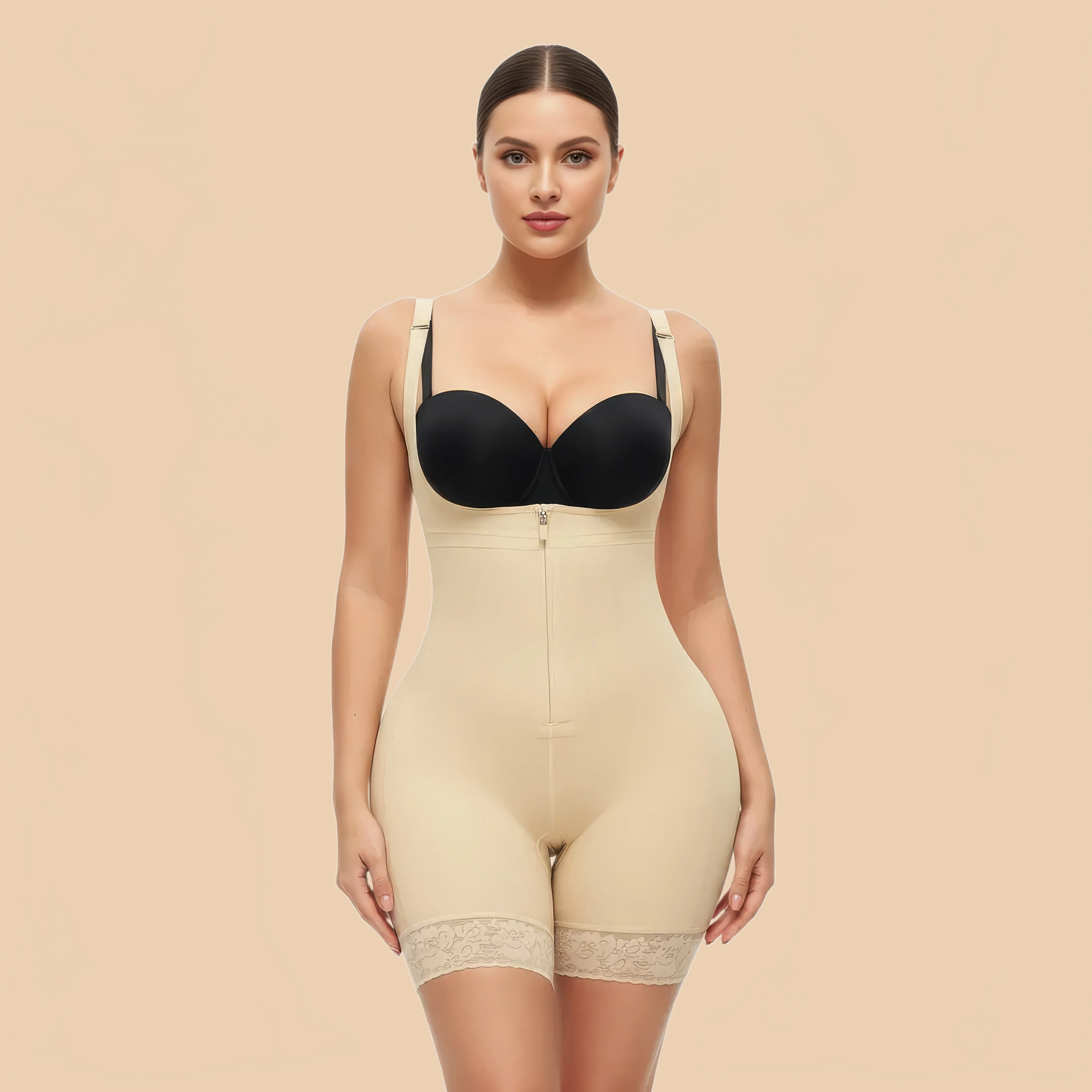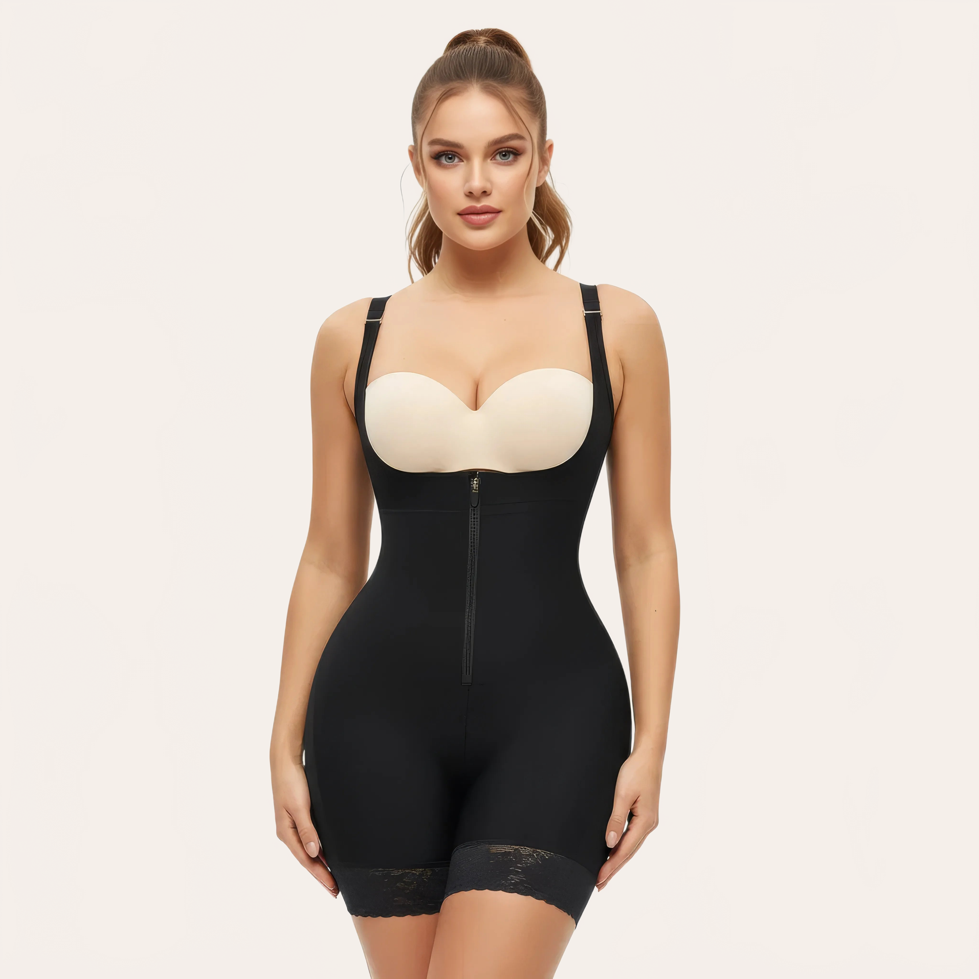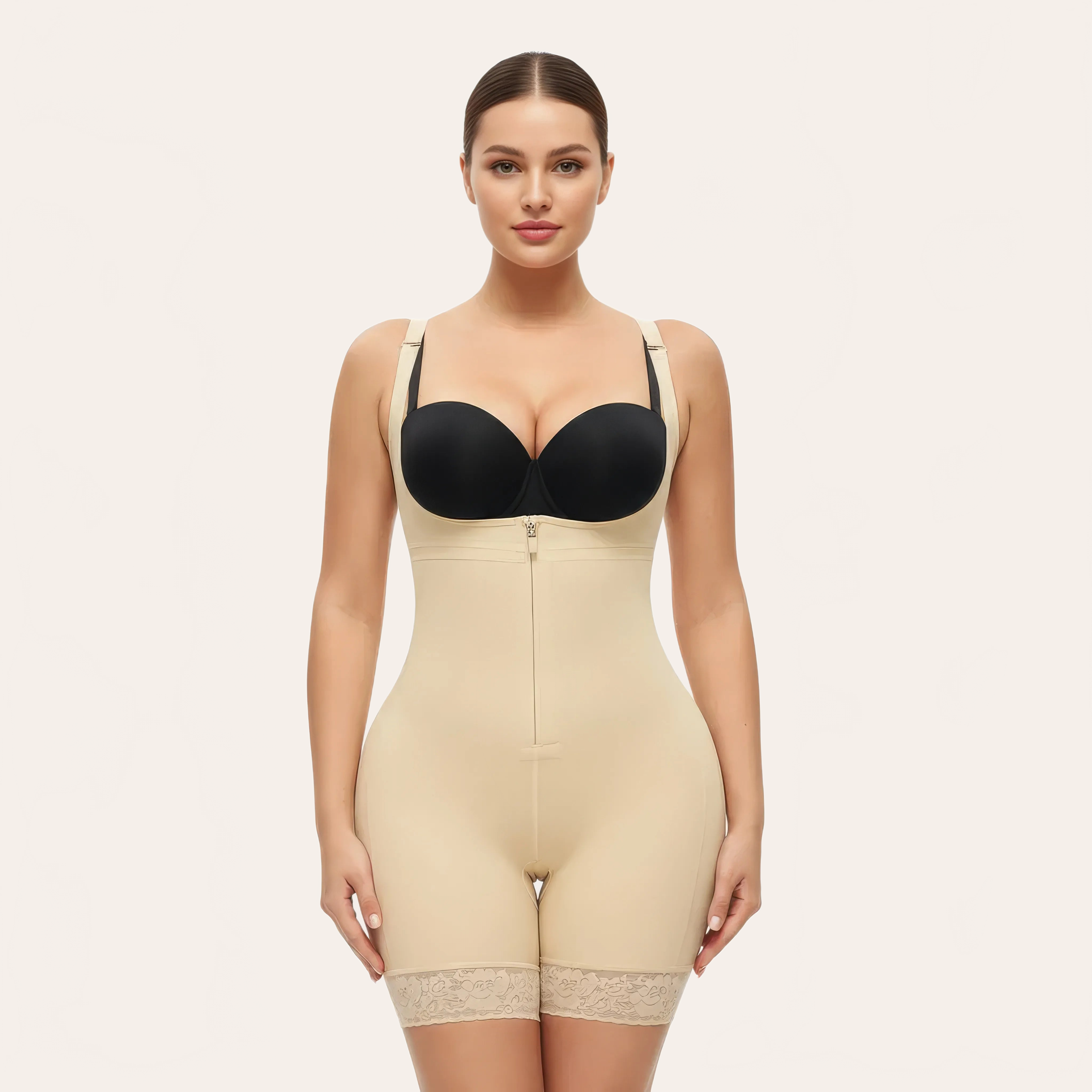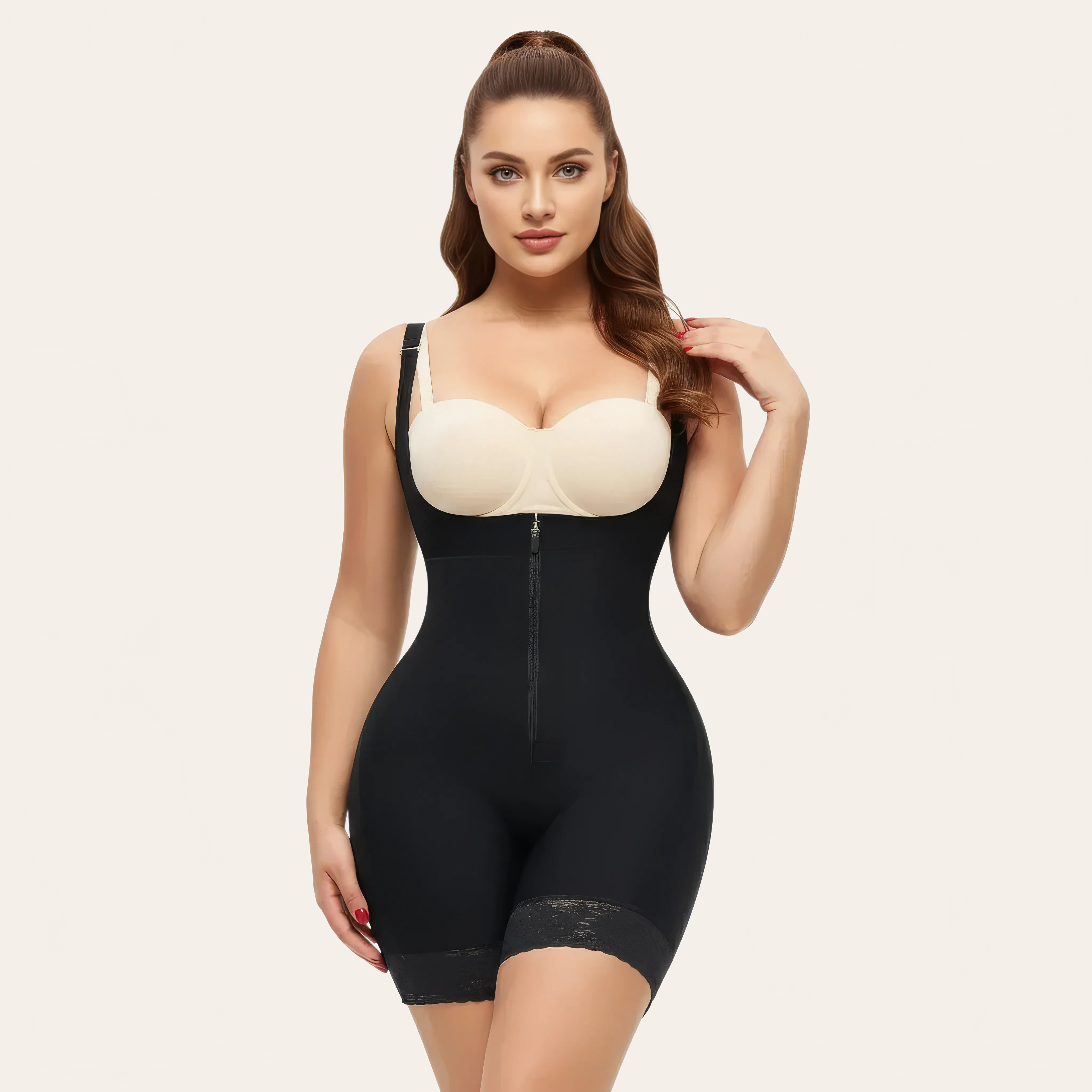 Entwickelt, um mit Ihrem eigenen BH getragen zu werden, passt er sich allen Körpertypen an und sorgt für einen perfekt stabilen Sitz. Der verstärkte Reißverschluss in Kombination mit den inneren Haken garantiert ein einfaches Anlegen und sicheren Halt.