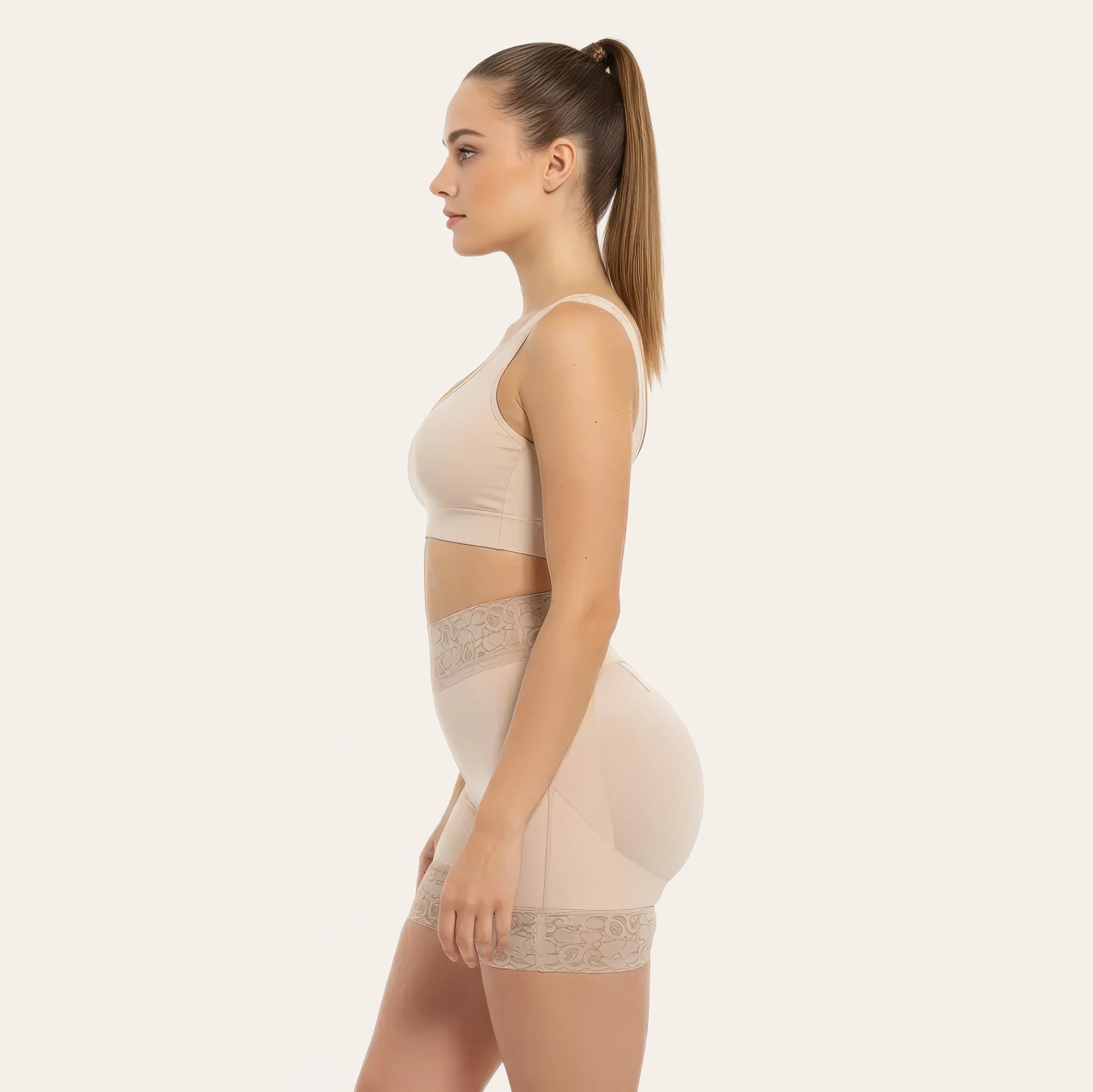 Dank seines hochwertigen, elastischen Stoffs passt er sich jeder Kurve an, verfeinert die Silhouette und unterstützt die Haltung. Ideal im Alltag, nach der Geburt oder um ein eng anliegendes Outfit zu betonen.