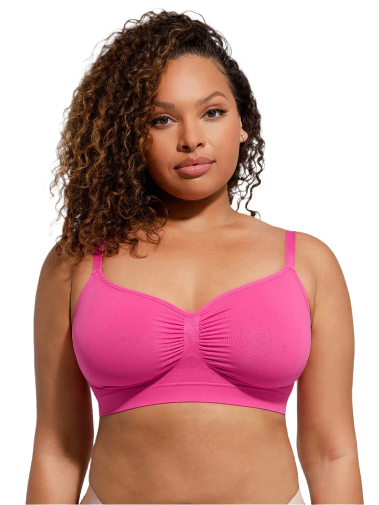 Das bügellose Design vermeidet unnötigen Druck, während die verstellbaren Träger sorgen für einen stabilen und bequemen Halt den ganzen Tag über.