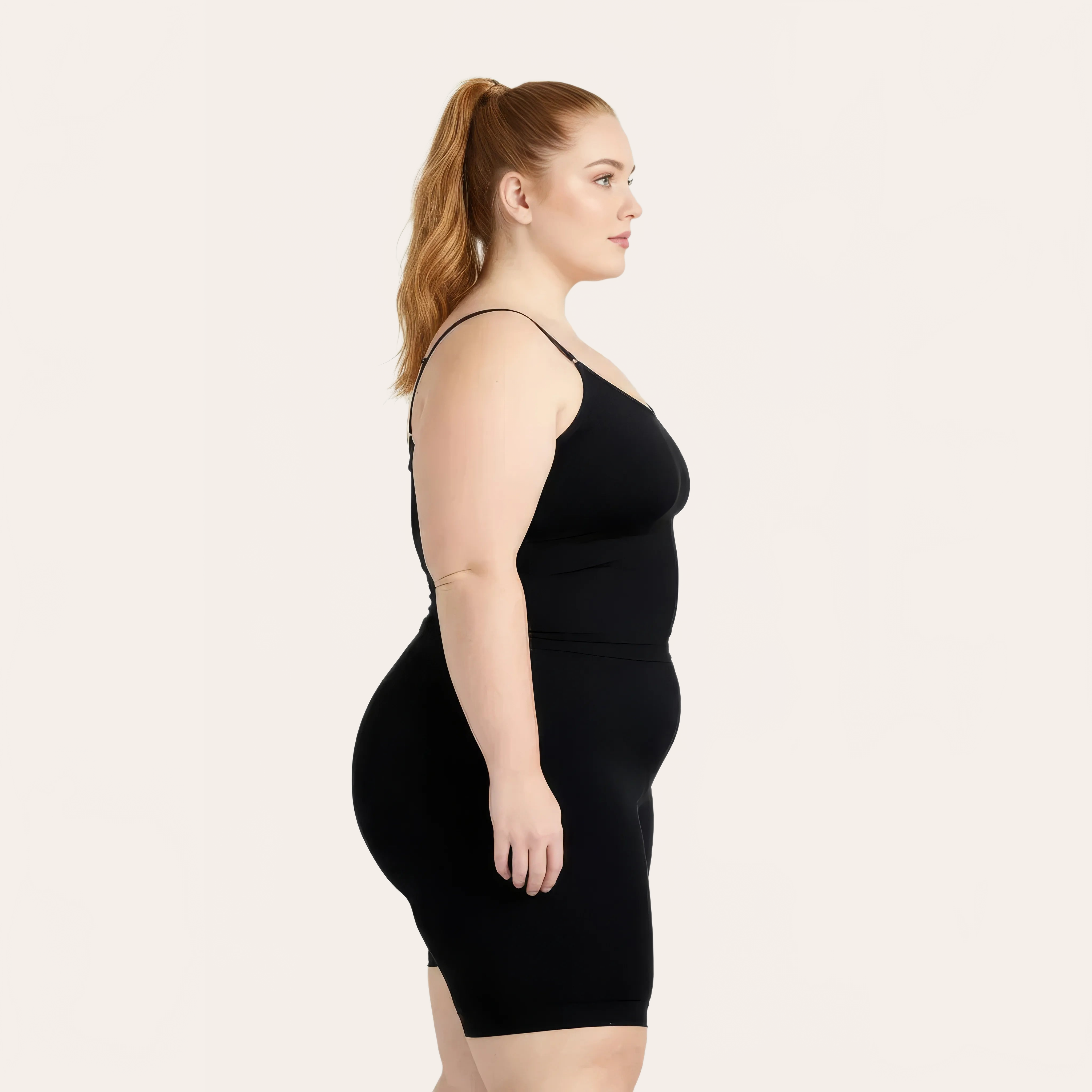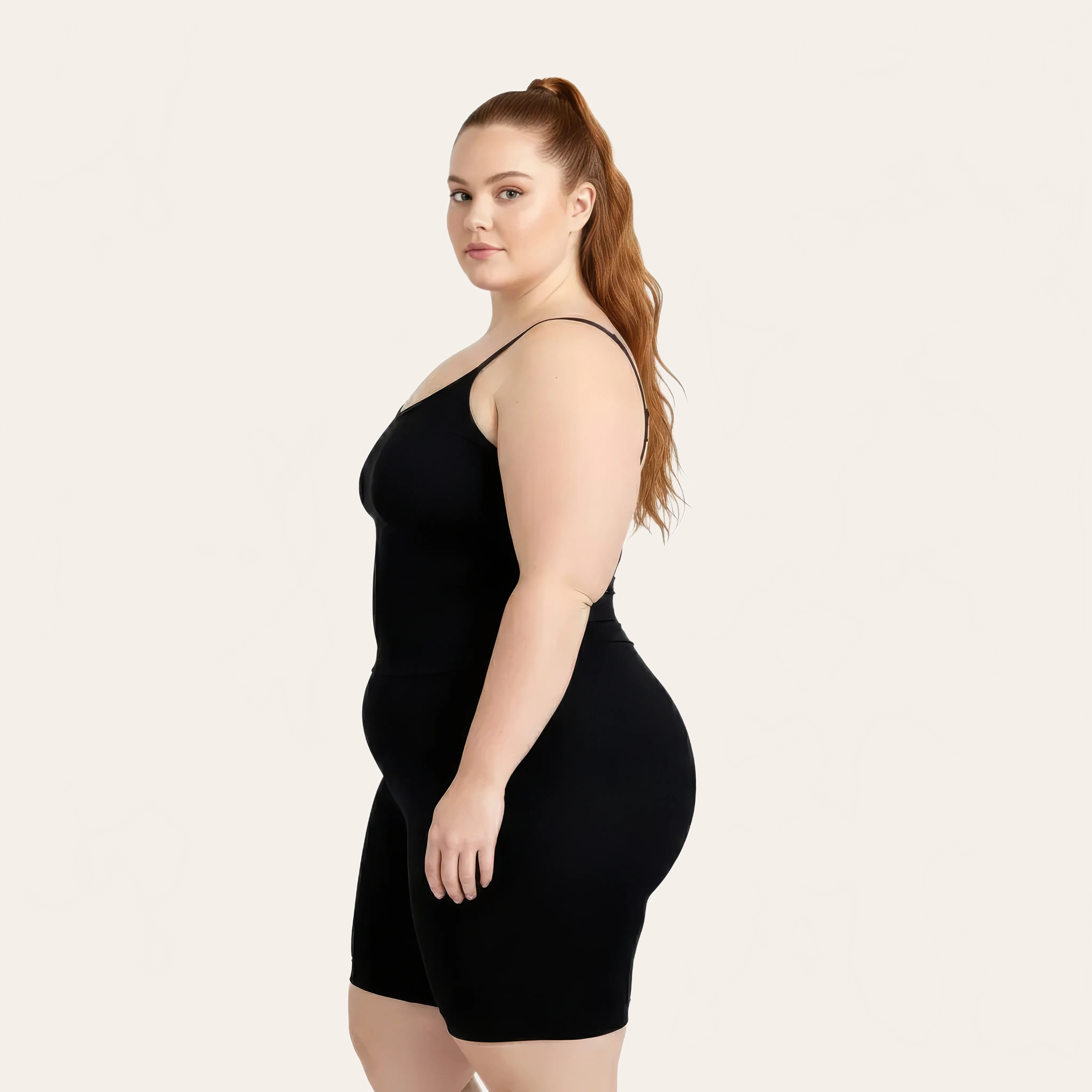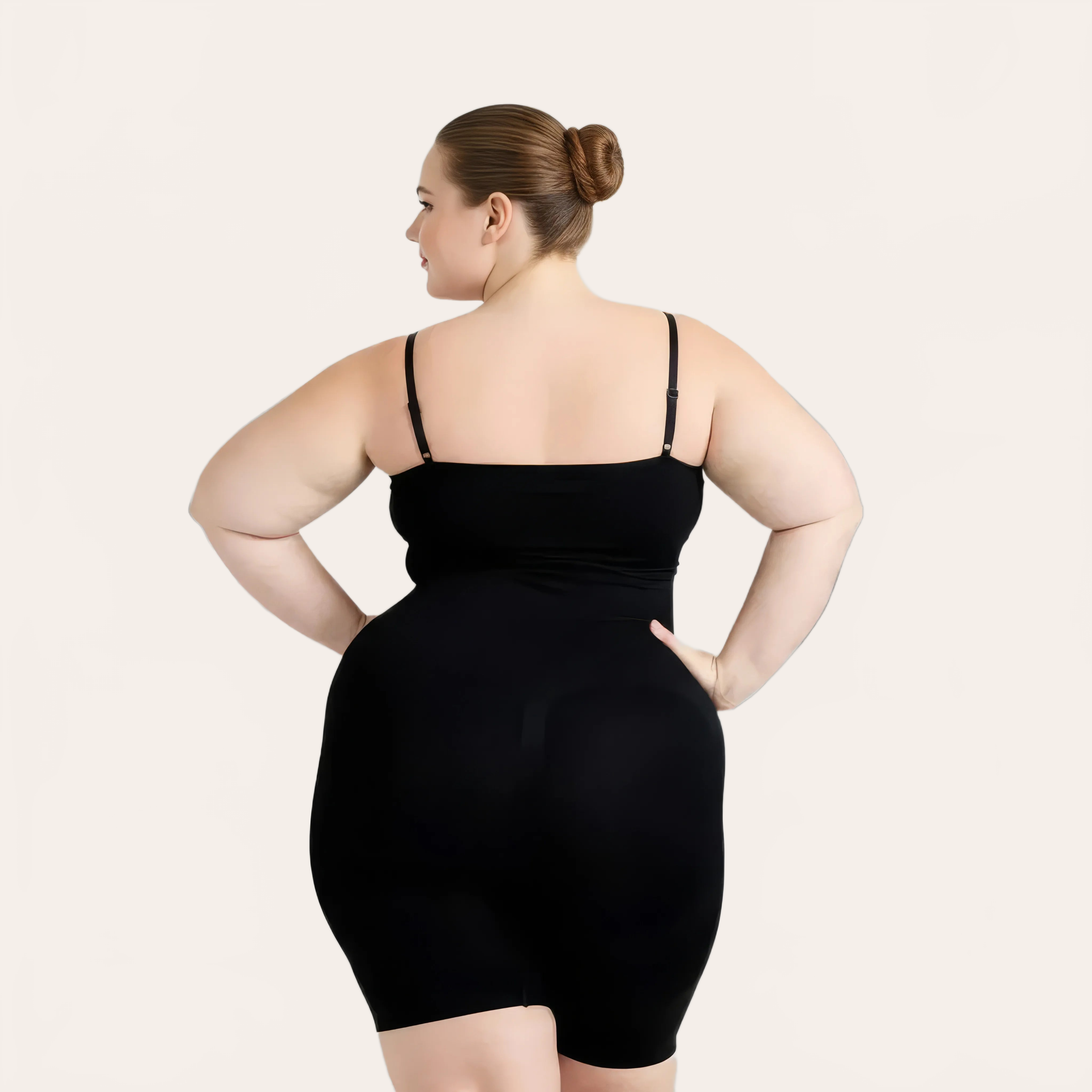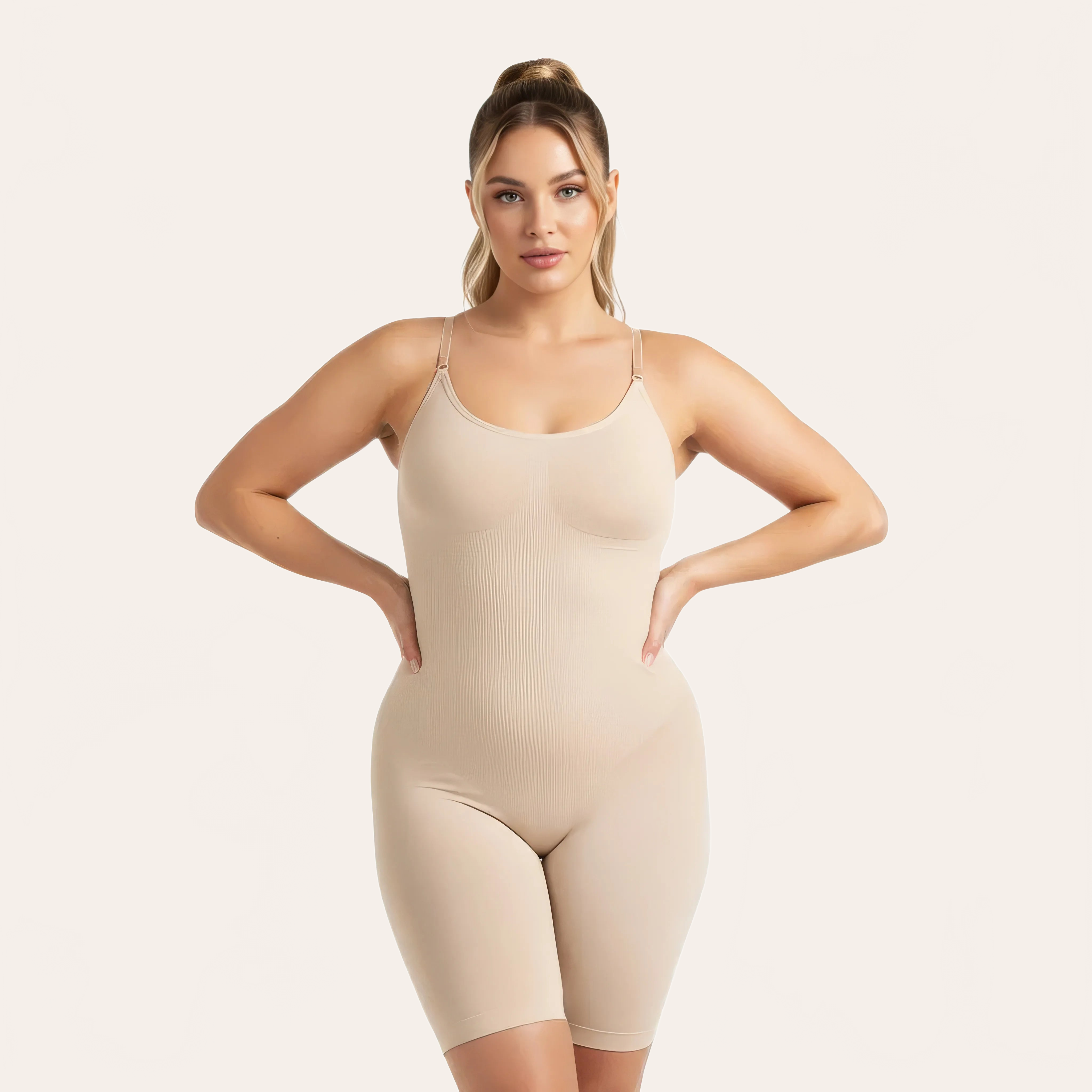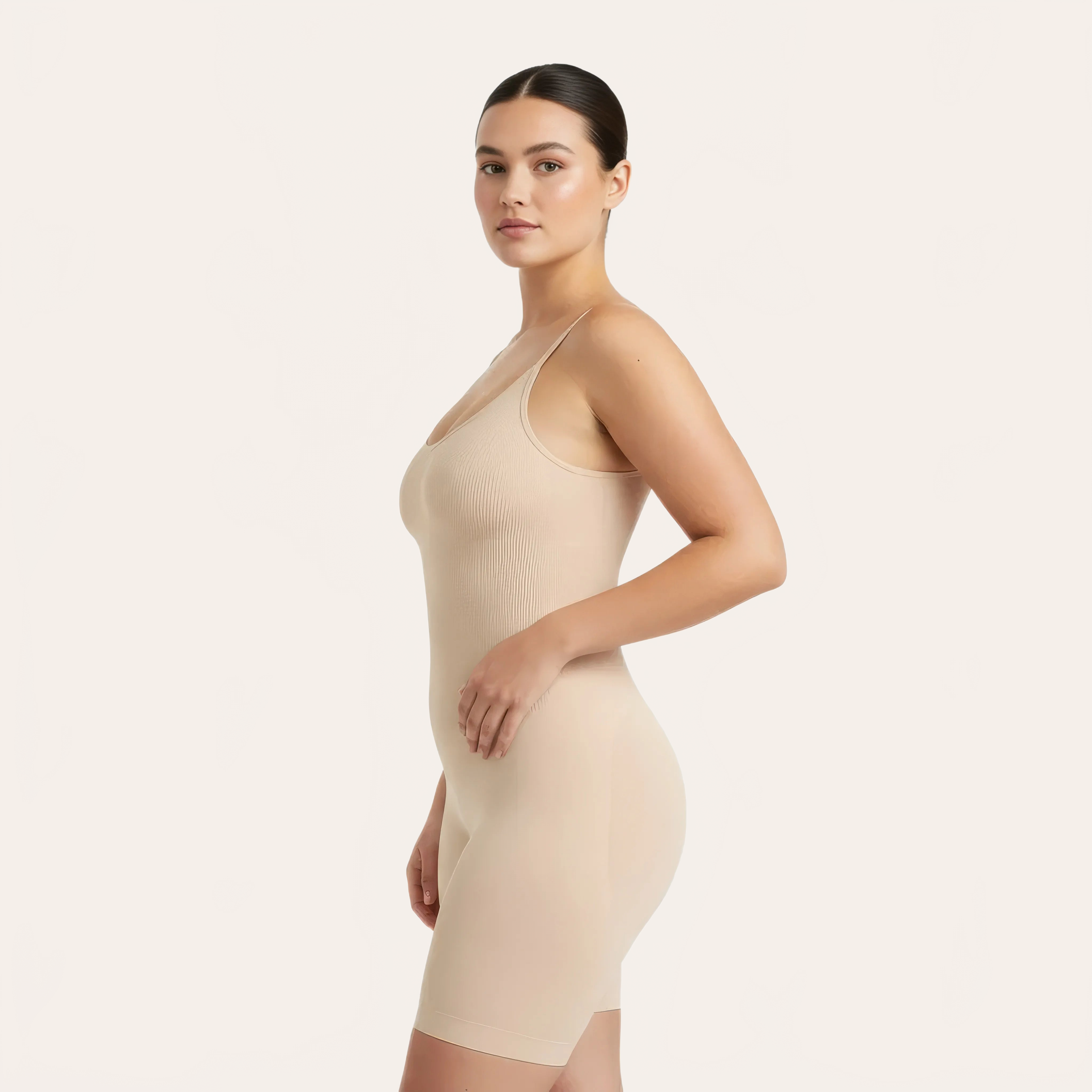 A full sculpting bodysuit designed to enhance the silhouette with elegance, while offering support natural bust support. Its soft, ultra-stretch technical knit hugs the body like a second skin, smooths the waist, slims the tummy, and subtly shapes the hips and thighs.