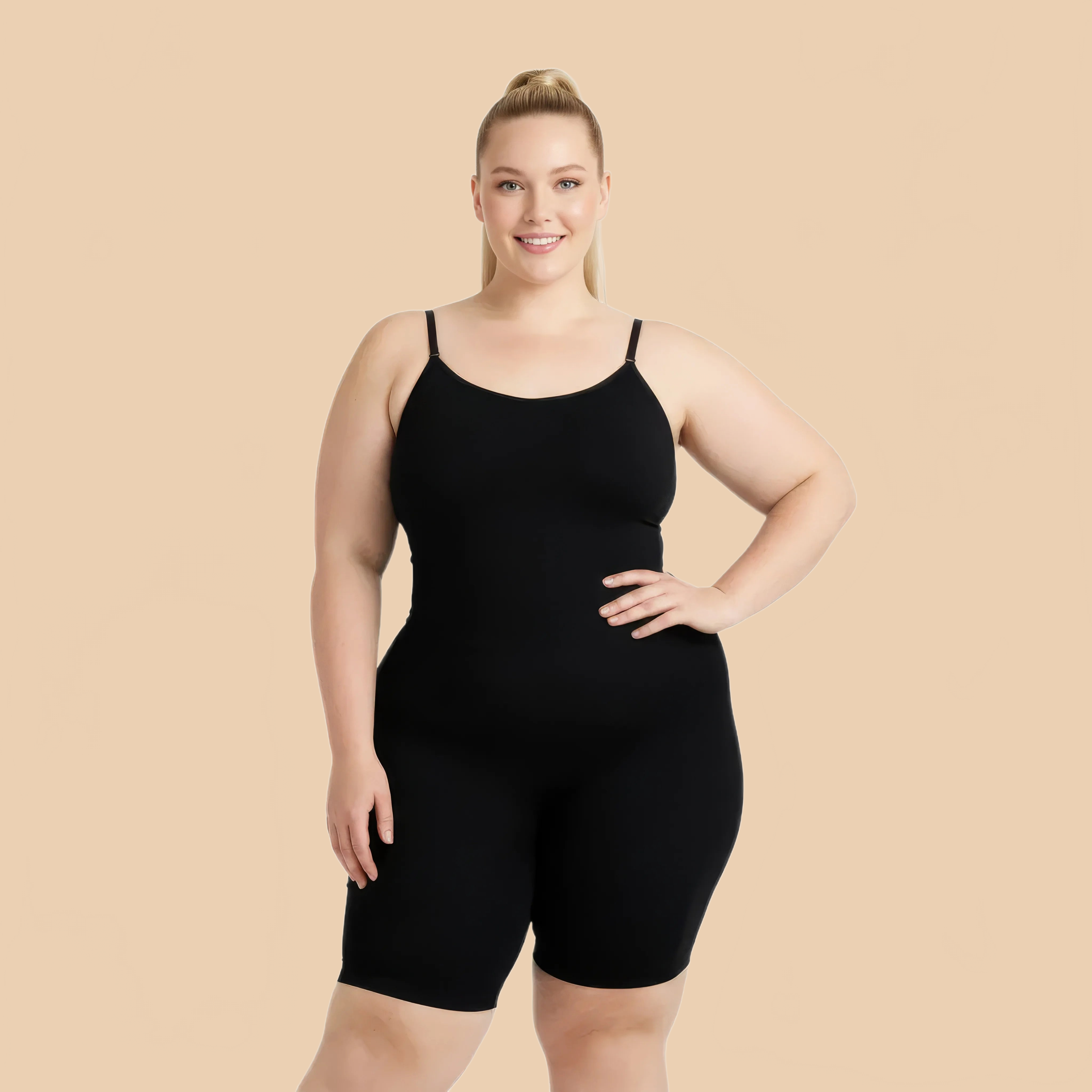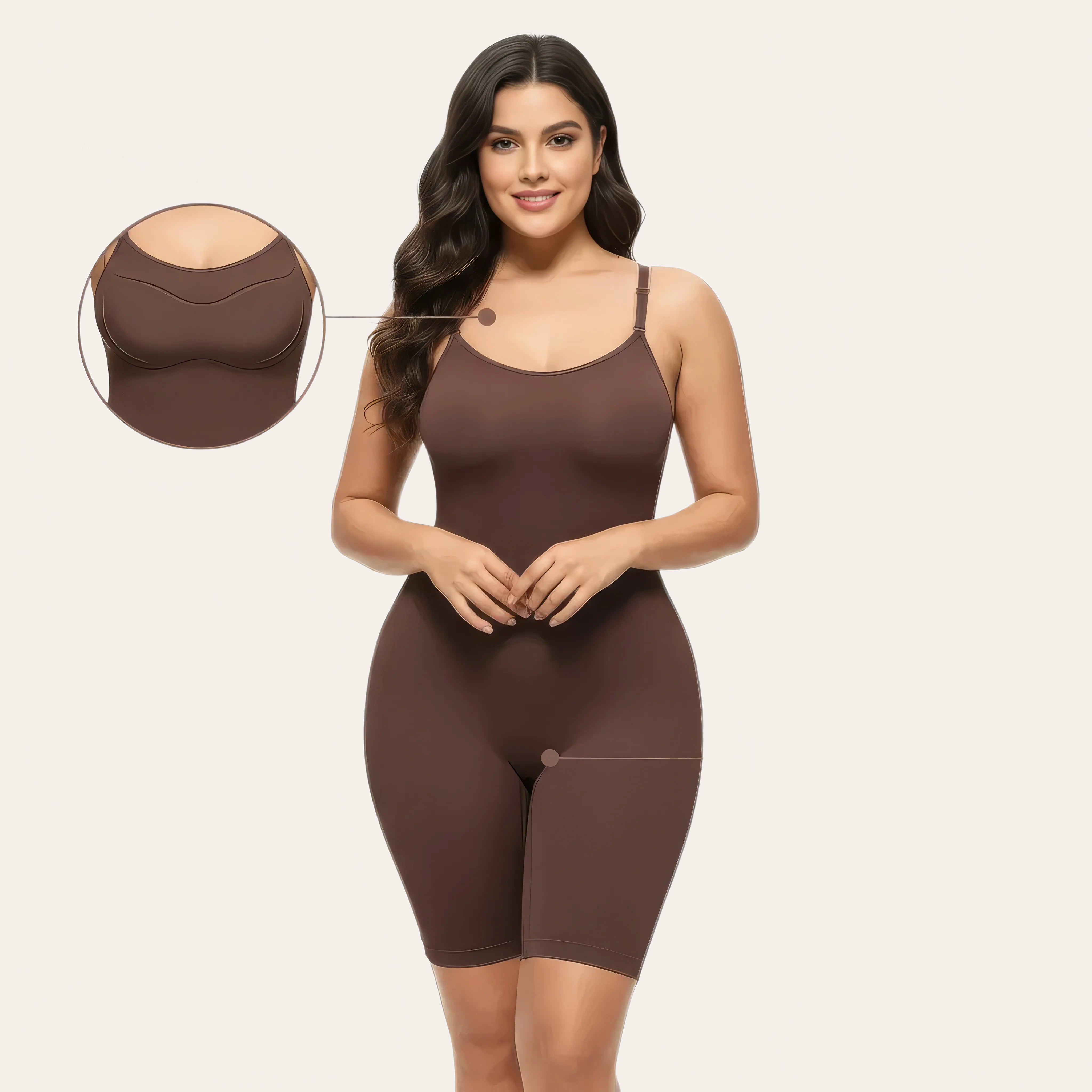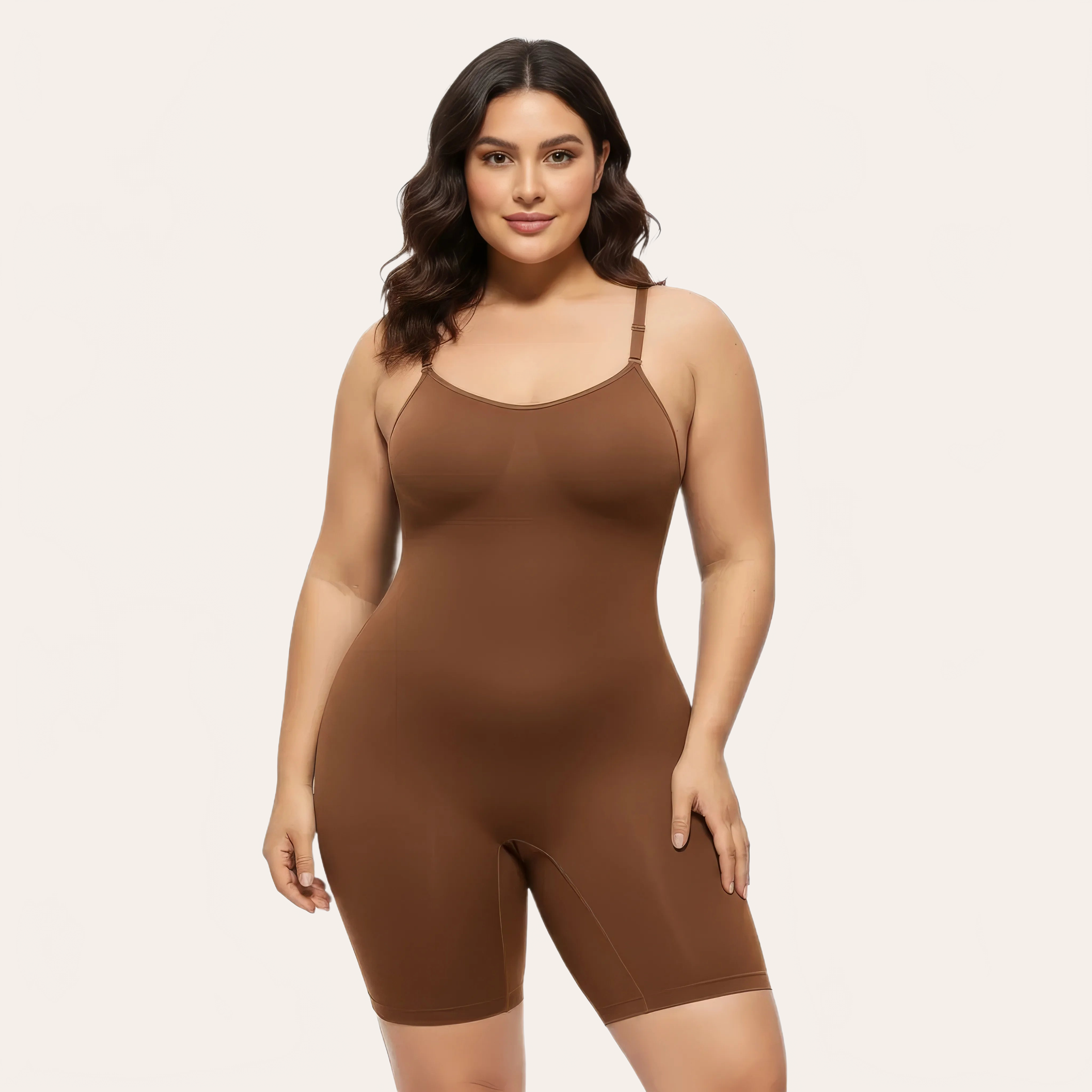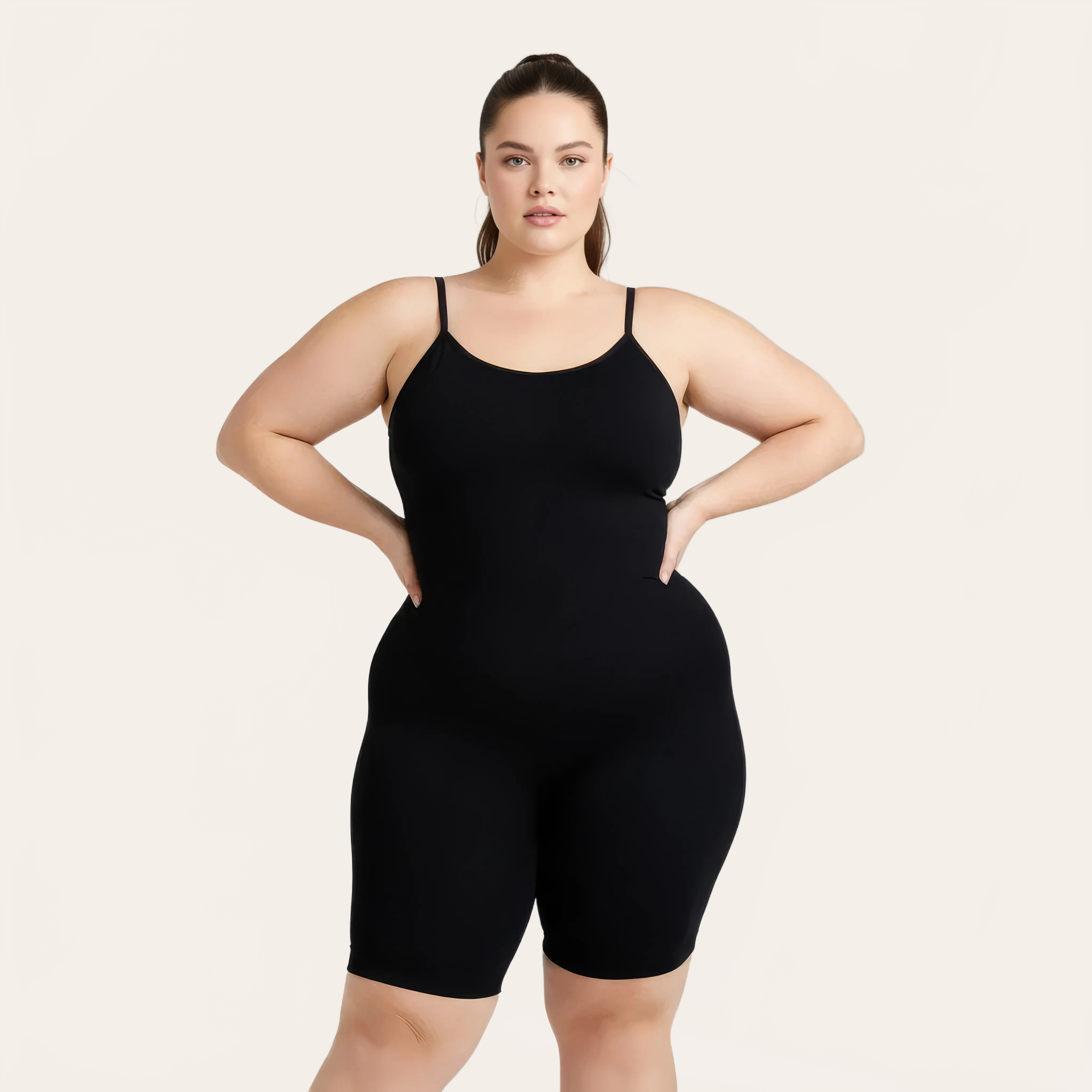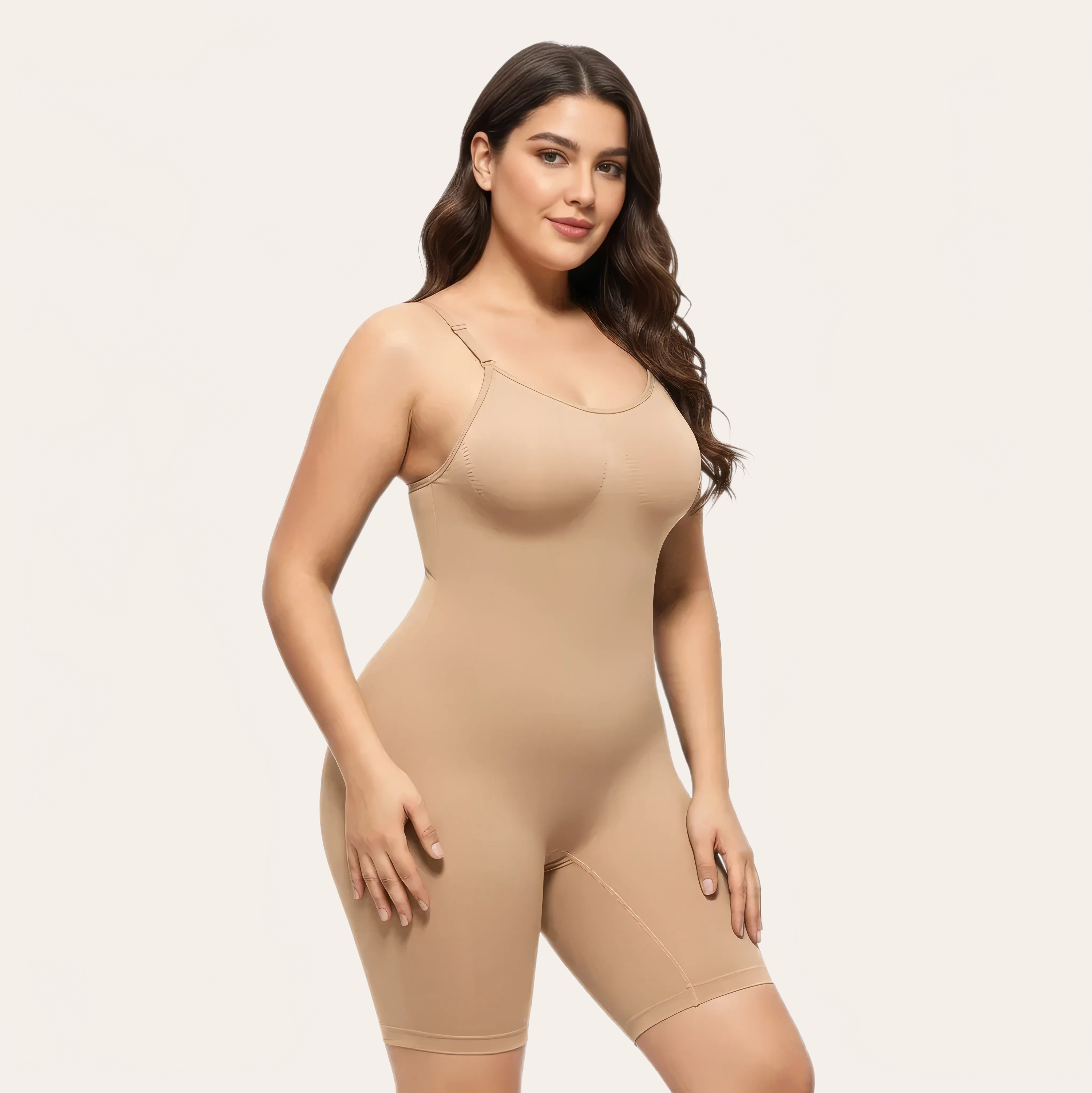 A full sculpting bodysuit designed to enhance the silhouette with elegance, while offering support natural bust support. Its soft, ultra-stretch technical knit hugs the body like a second skin, smooths the waist, slims the tummy, and subtly shapes the hips and thighs.