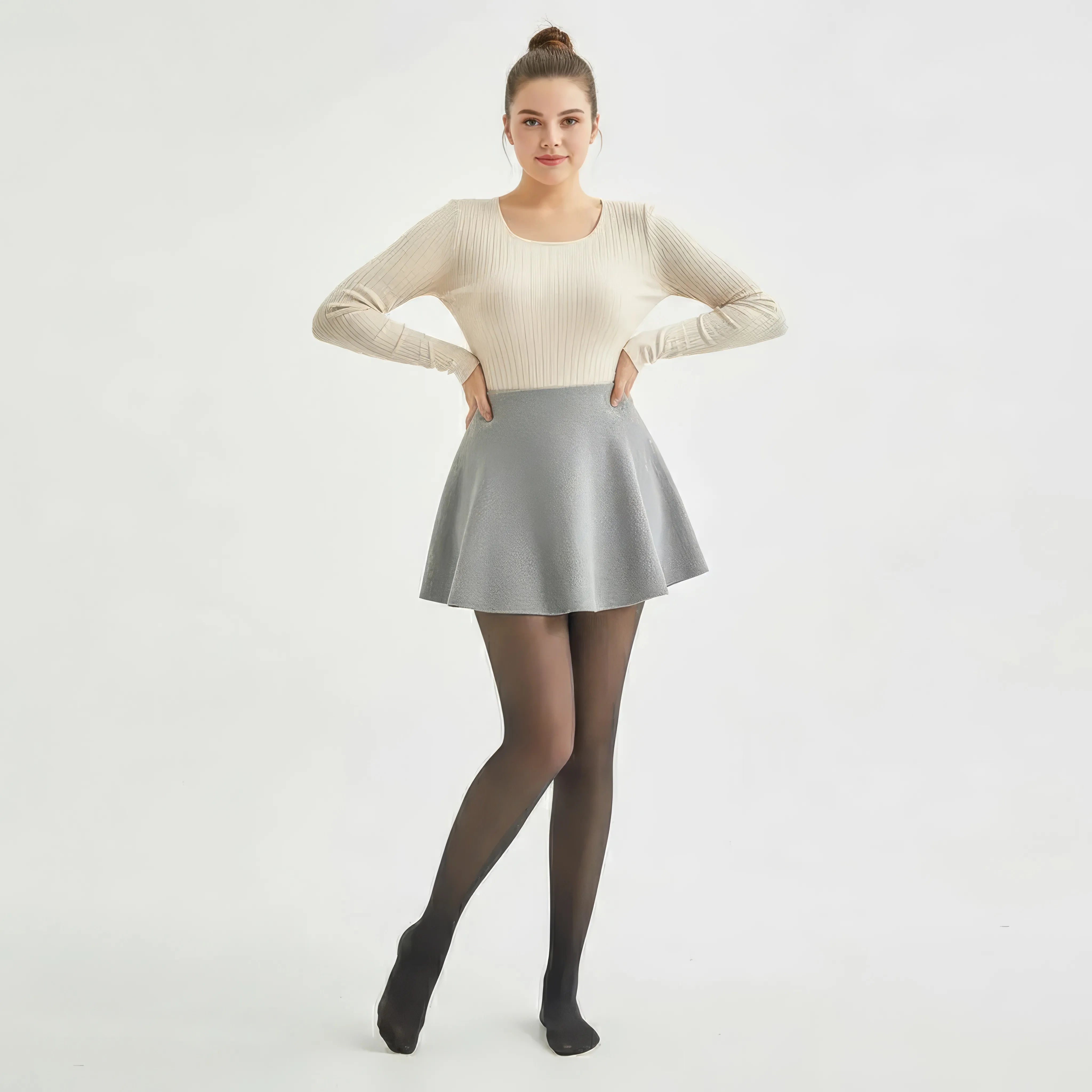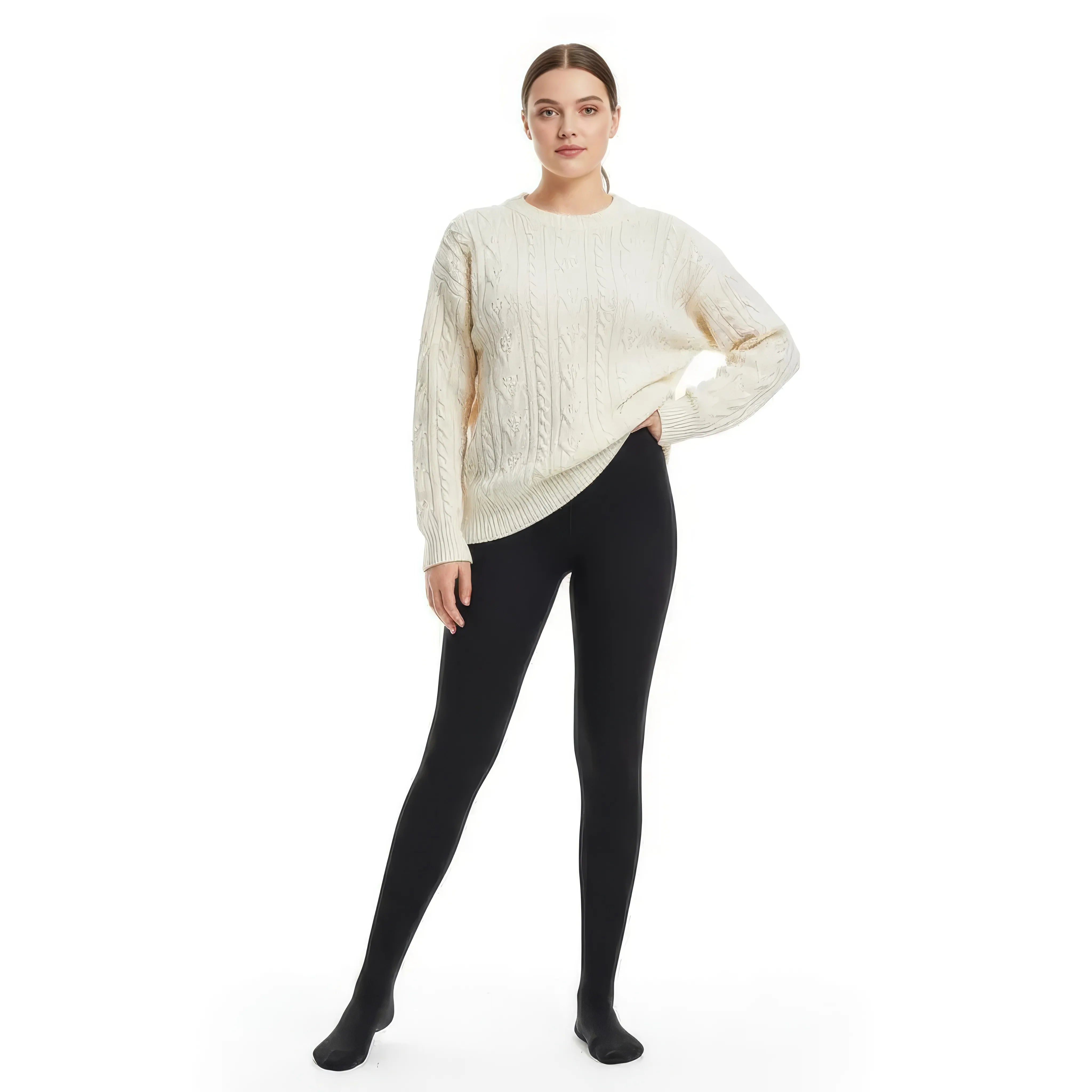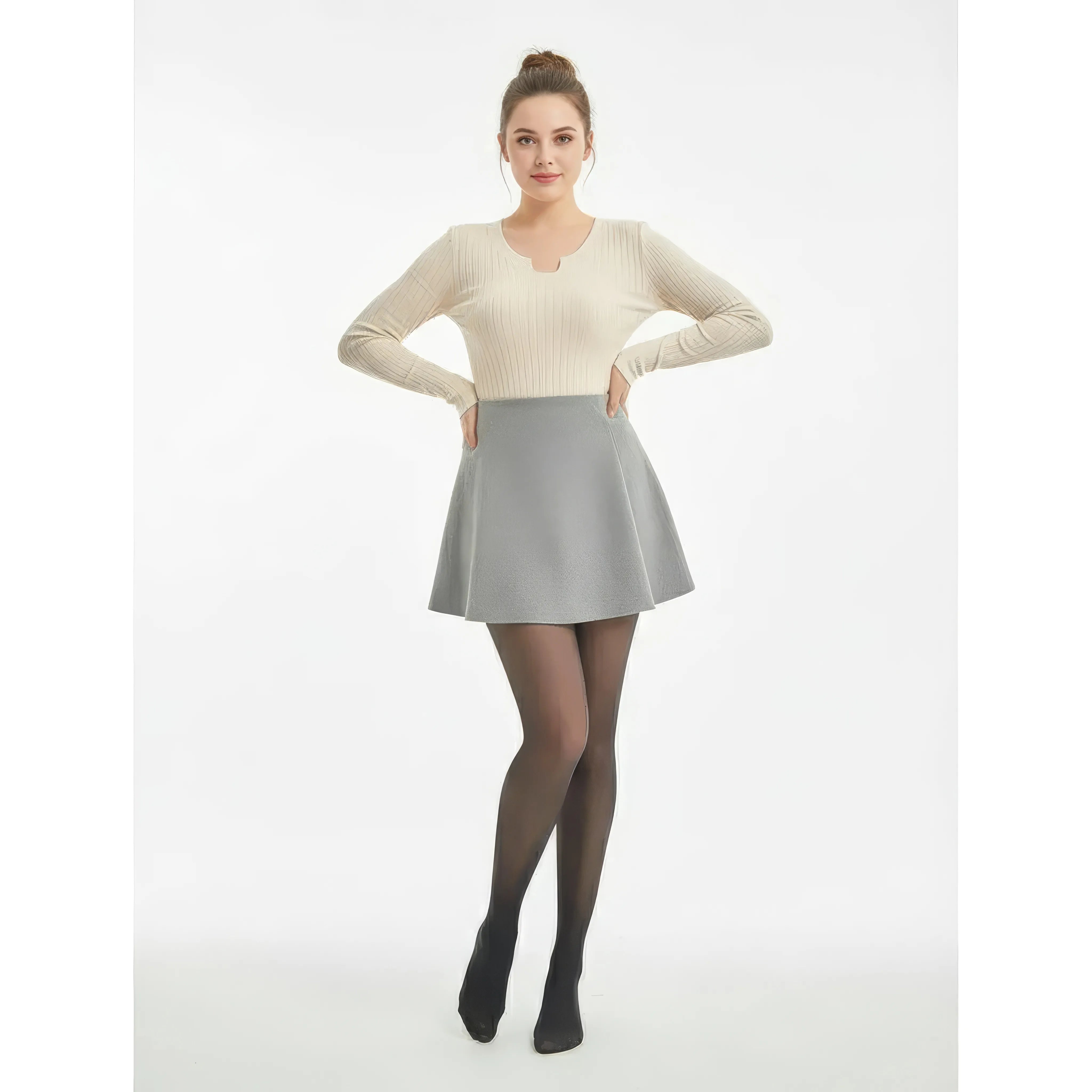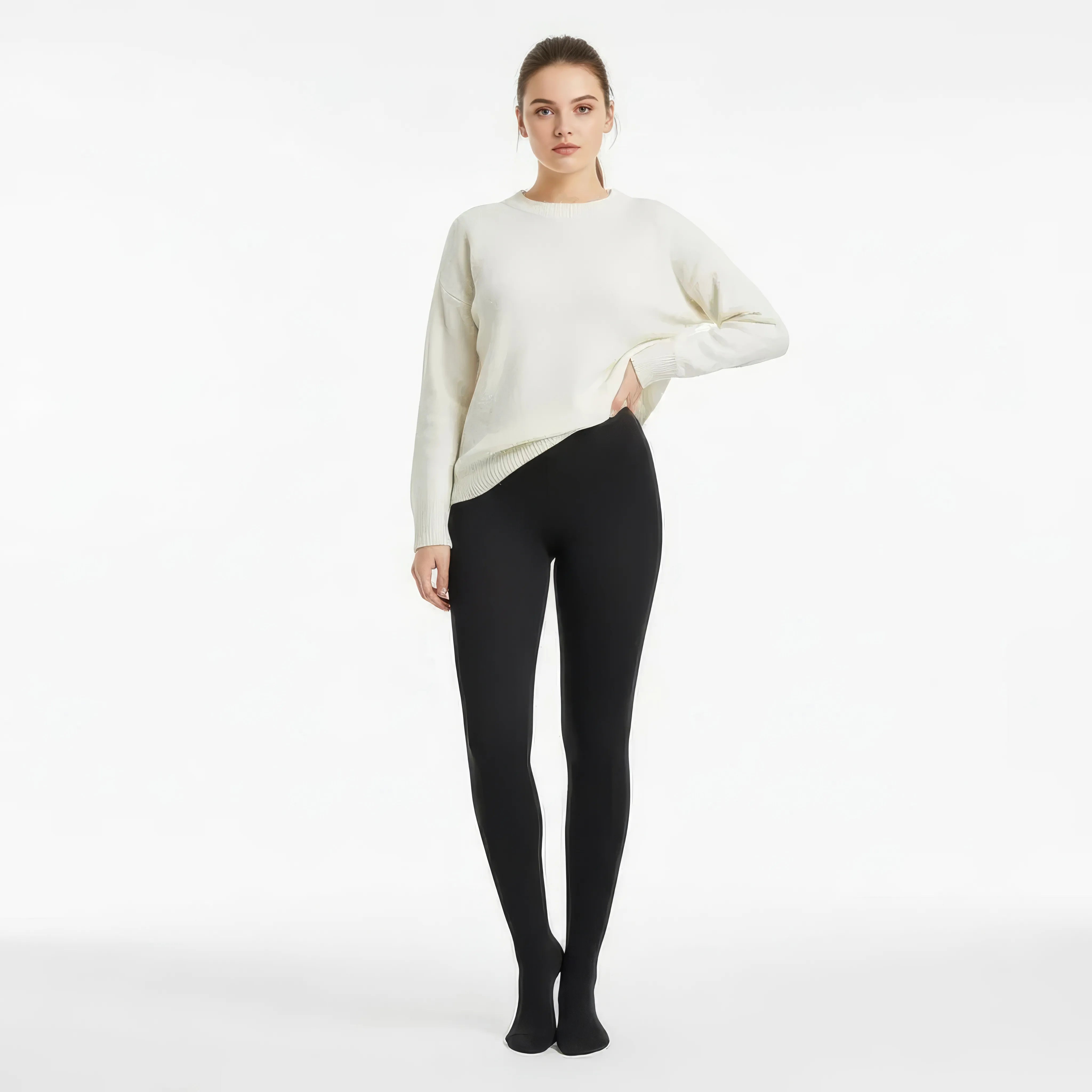 Thermal veil-effect tights designed to combine visual elegance and protection against the cold. Its delicately translucent finish mimics the appearance of fine tights, while its structure inside provides warmth, comfort, and support.