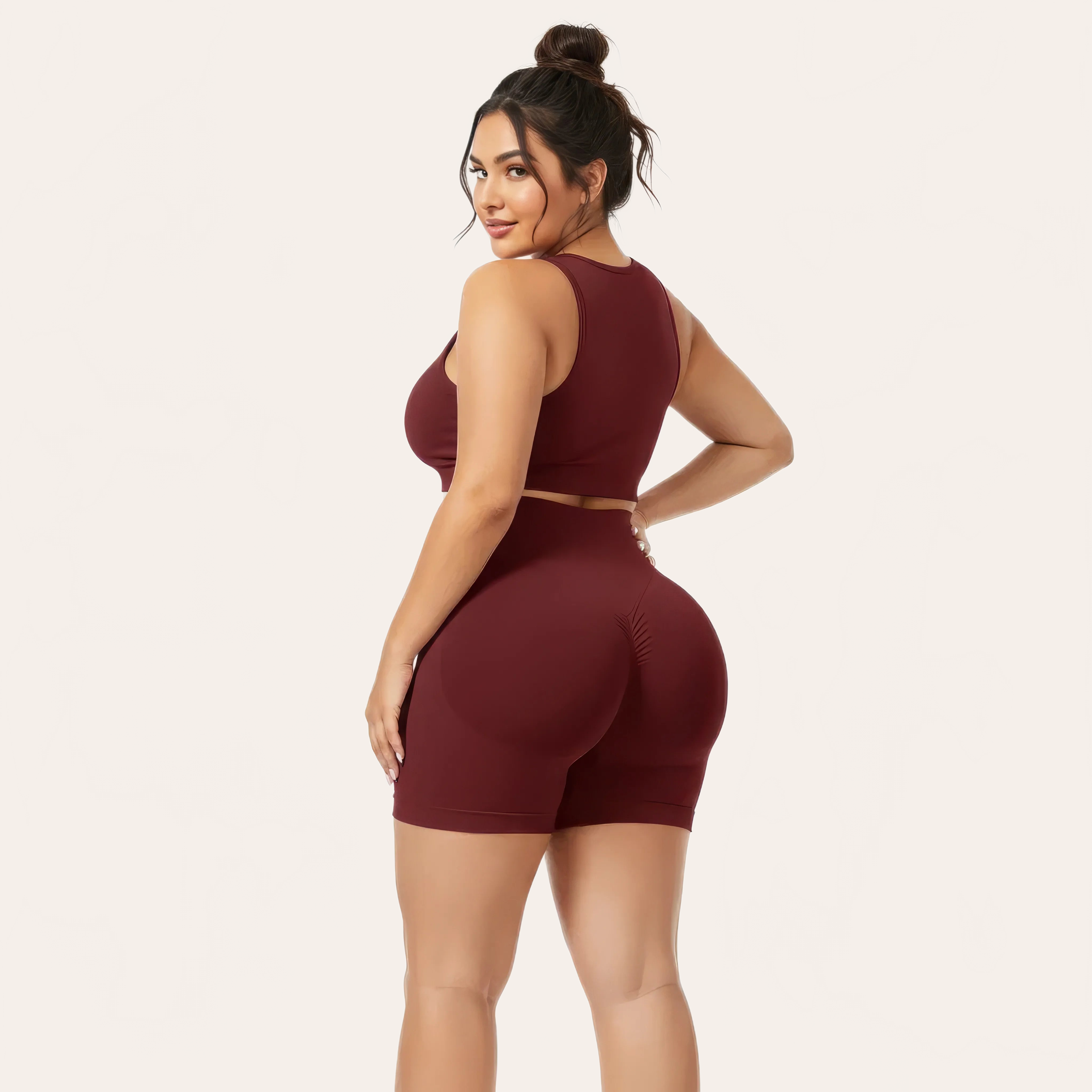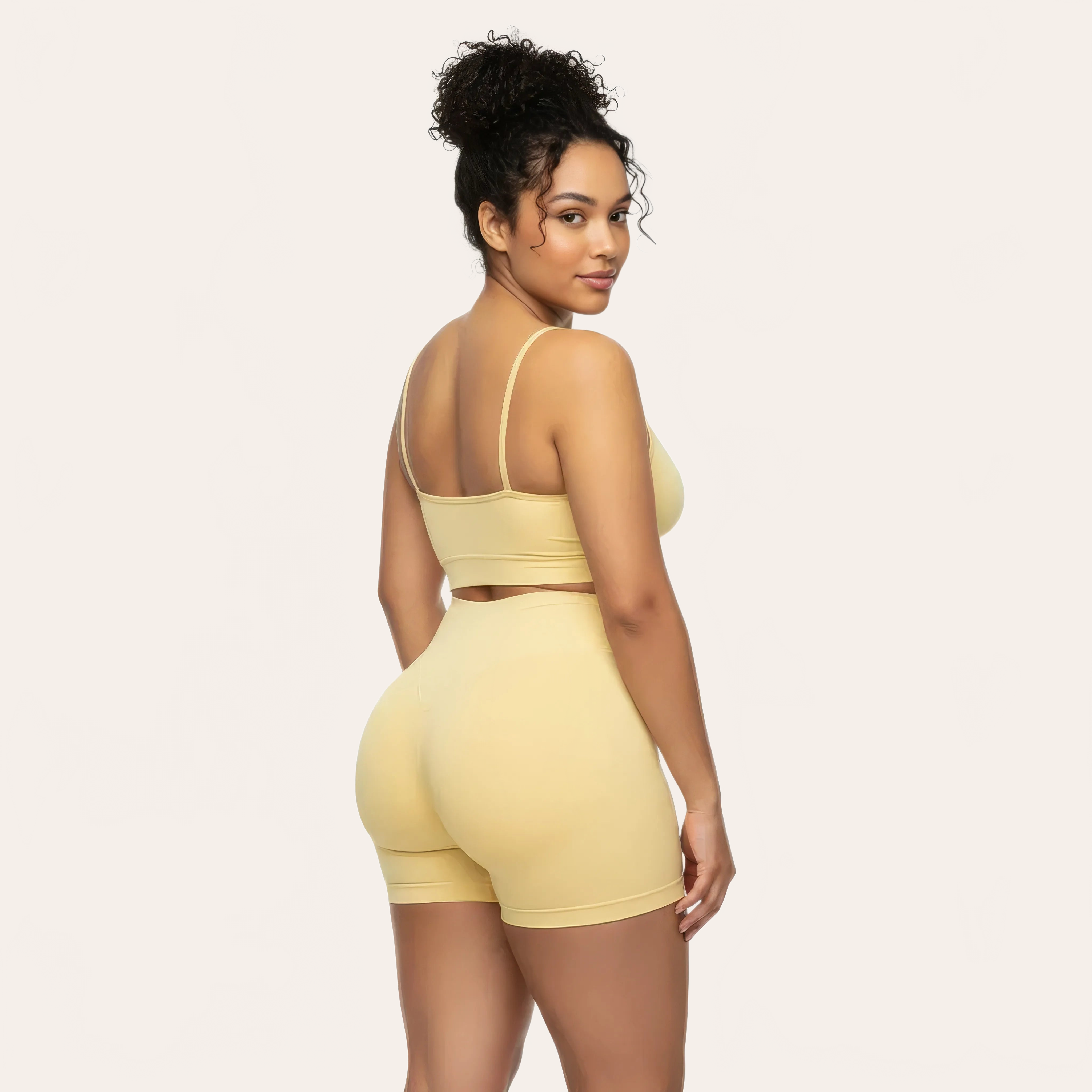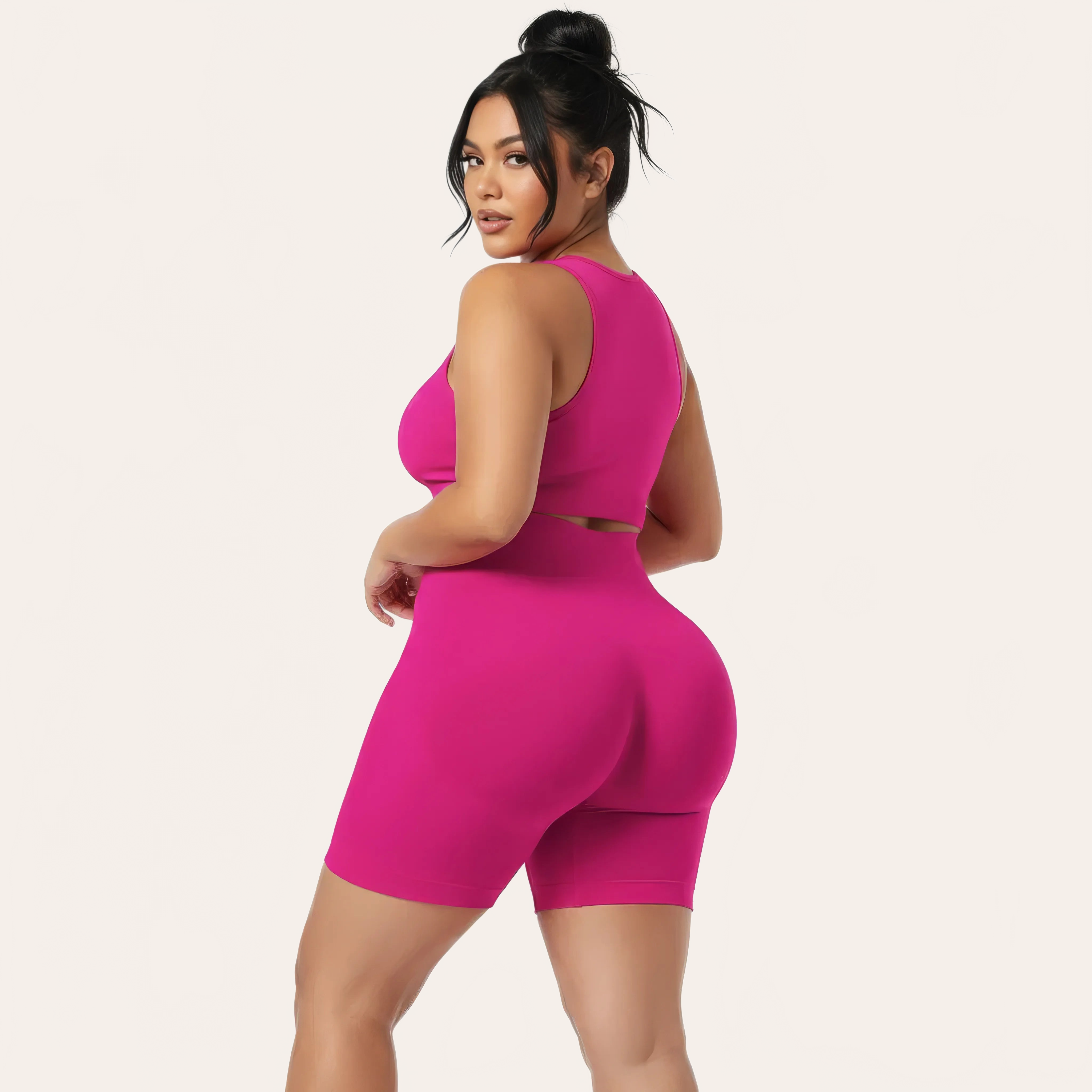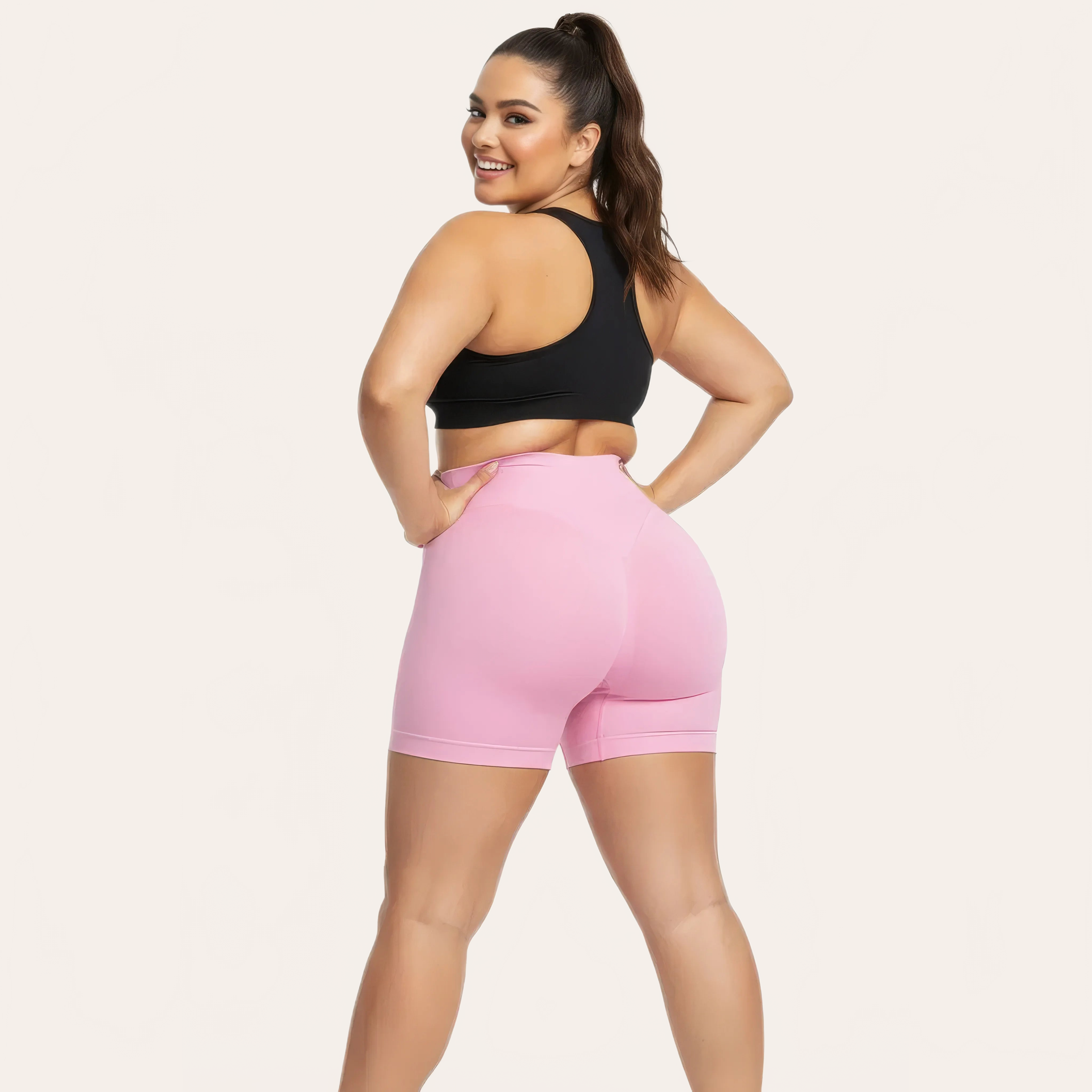 The enveloping high waist precisely supports the tummy while the shaping structure highlights naturally enhances the buttocks. Ideal for sport, wellness, or everyday use, this short combines performance and modern aesthetics.
