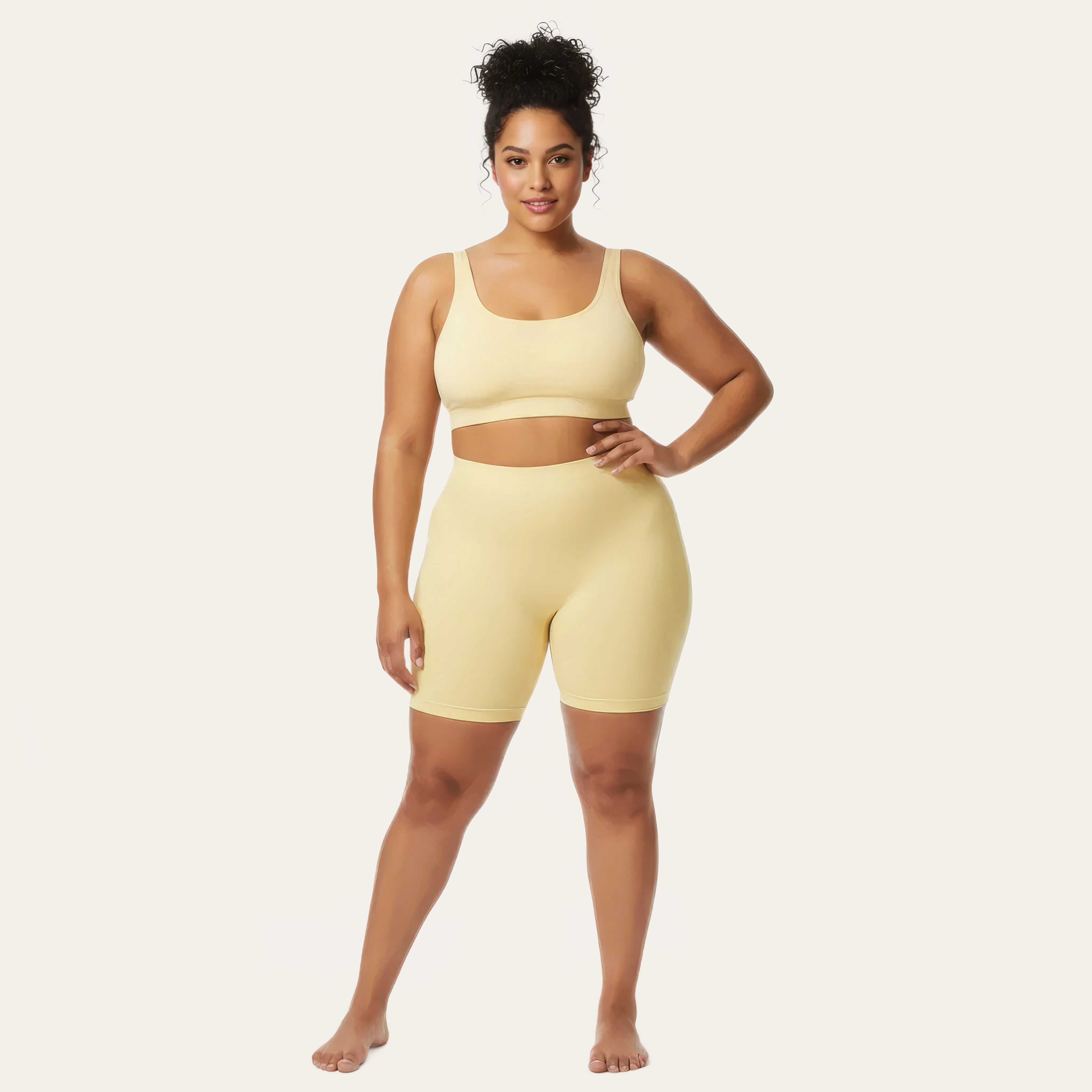 A high-waisted sculpting short with a seamless design, designed to enhance curves while offering an absolute feeling of lightness. Its technical fabric combines softness, stretchability, and breathability for optimal comfort, even during the most intense movements.