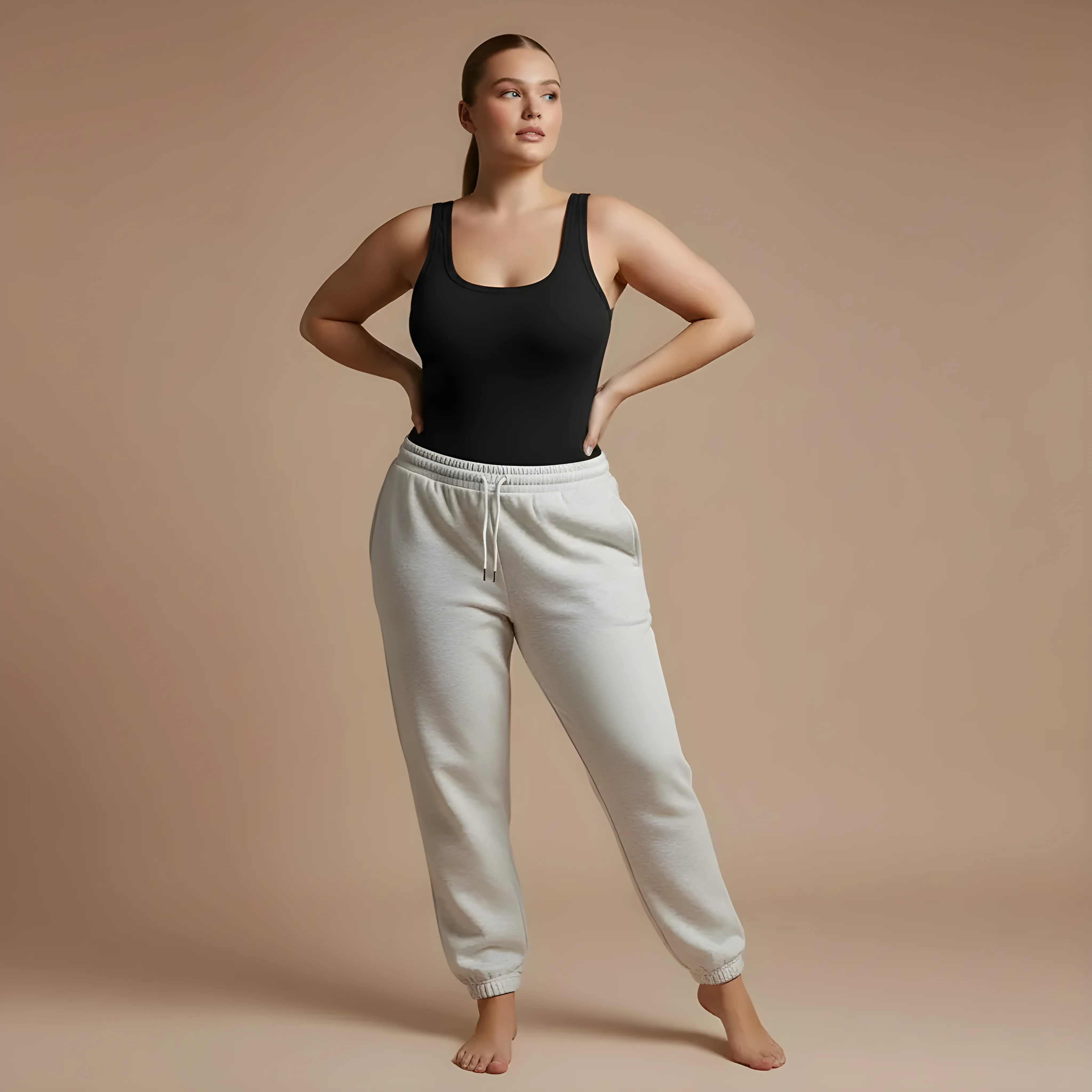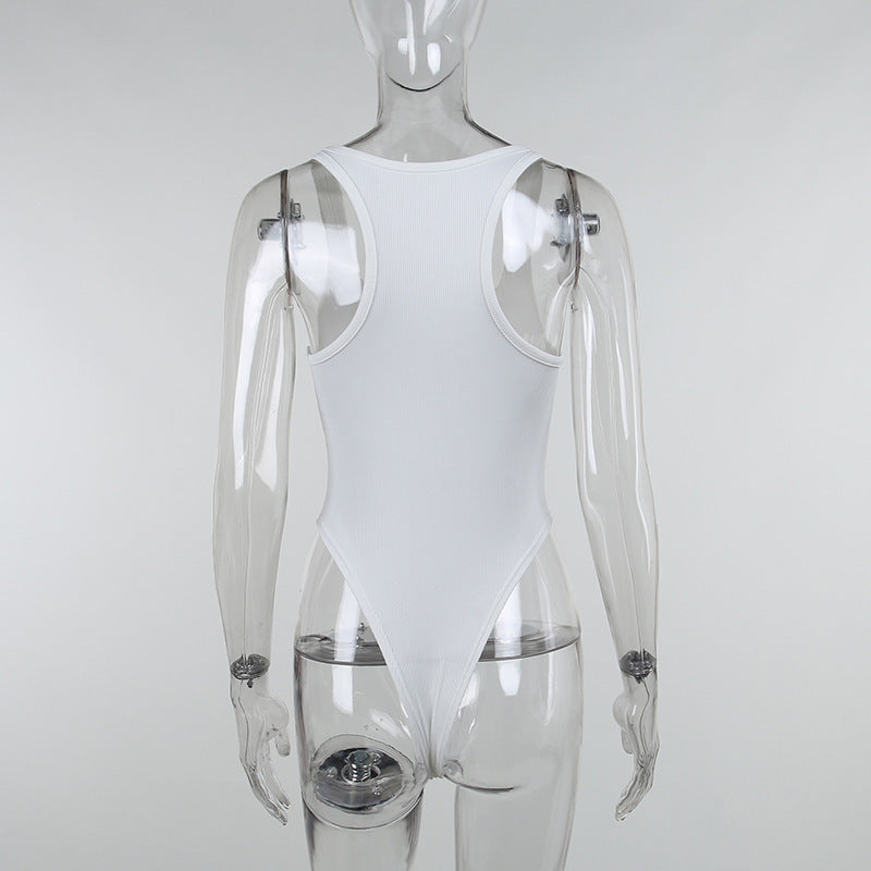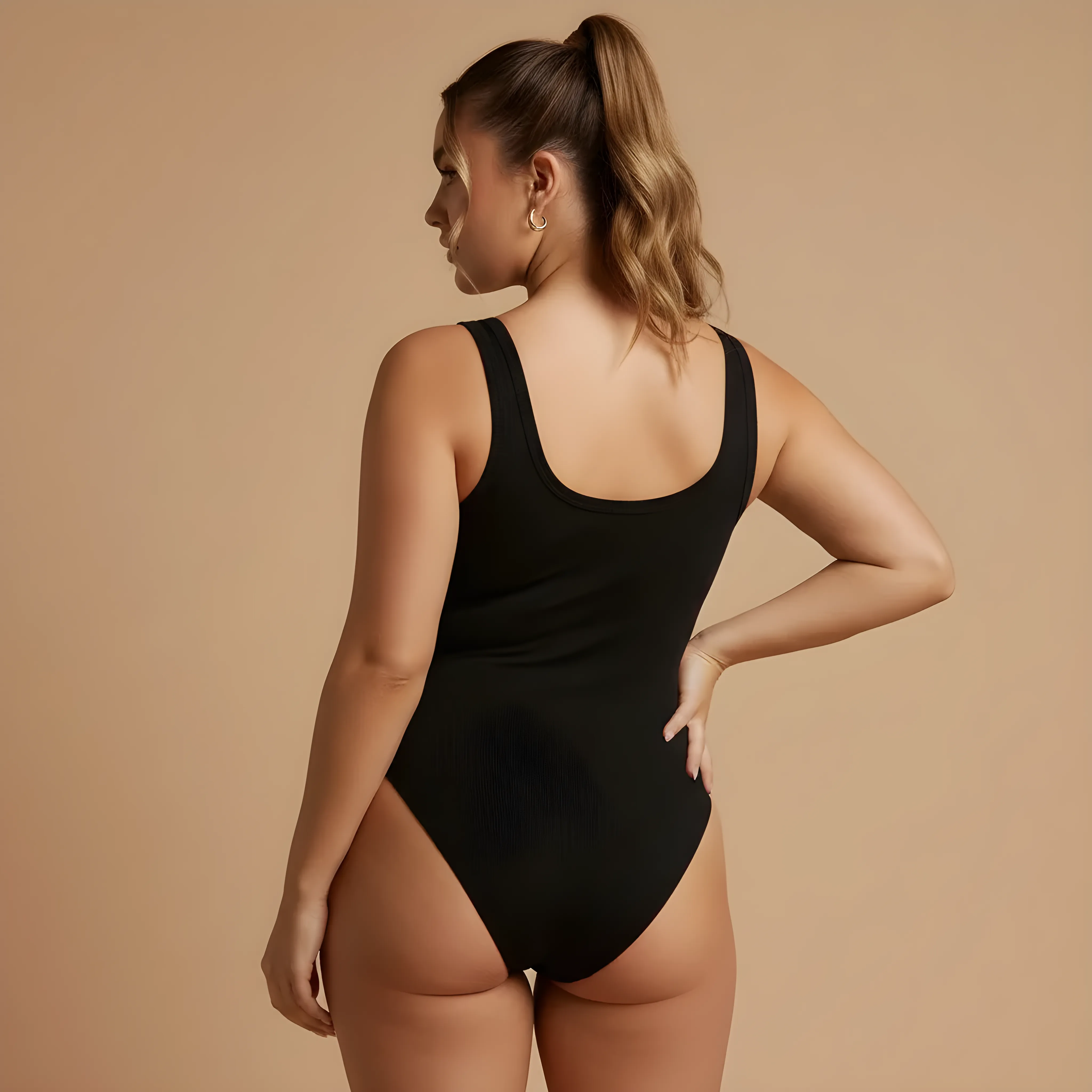 A fitted jumpsuit with a contemporary look, designed to hug the silhouette precisely while offering lasting comfort. Its stretchy ribbed knit naturally highlights curves and visually slims the figure.