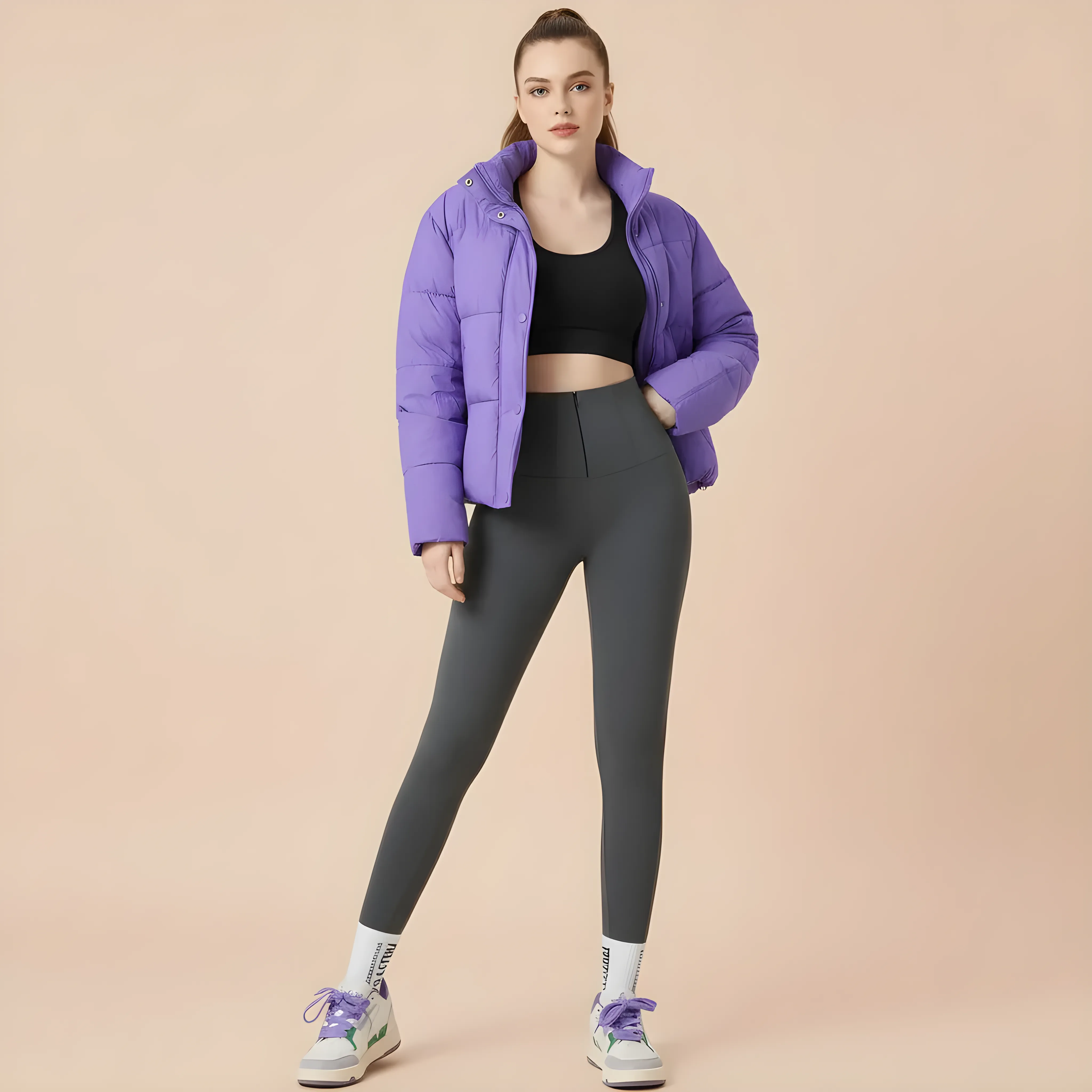 - Type: High-waisted pants.
