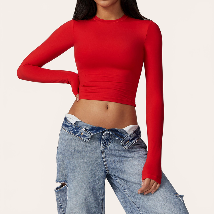 Un top moldeador de manga larga diseñado para acompañar el cuerpo en el movimiento, con elegancia y precisión. Su material técnico ultra suave se adapta naturalmente a la silueta ofreciendo una sensación de segunda piel, ideal para el deporte como para un uso diario.