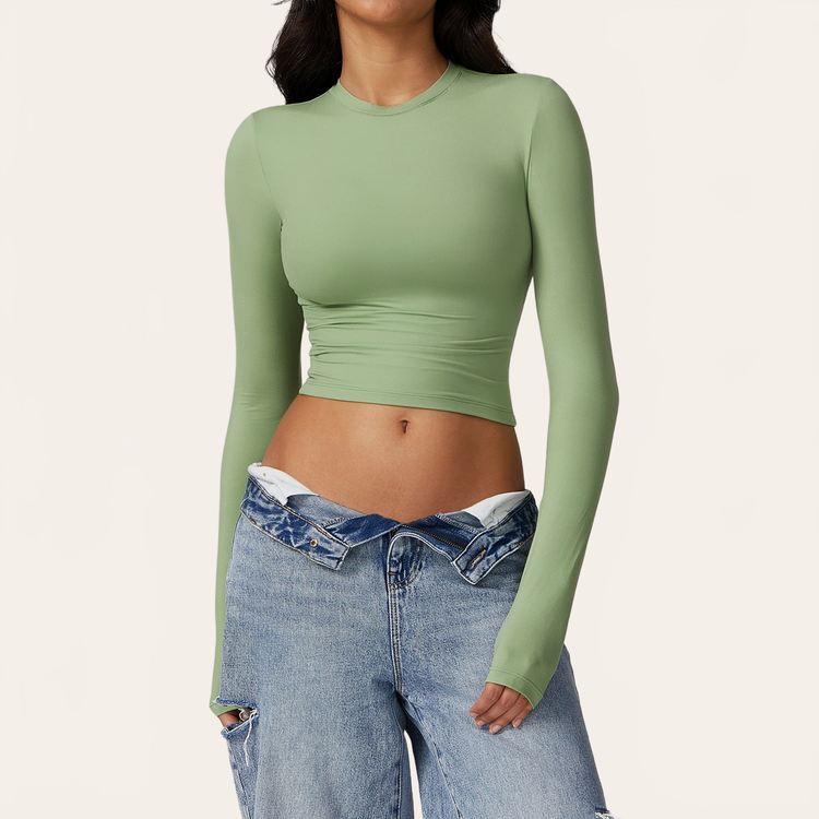 Un top moldeador de manga larga diseñado para acompañar el cuerpo en el movimiento, con elegancia y precisión. Su material técnico ultra suave se adapta naturalmente a la silueta ofreciendo una sensación de segunda piel, ideal para el deporte como para un uso diario.