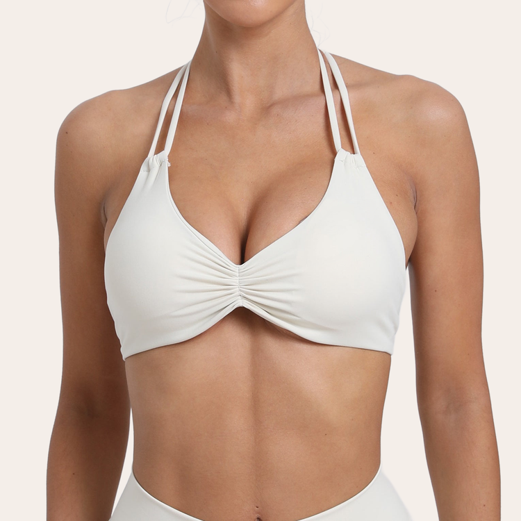 Una brassière deportiva elegante y funcional, diseñada para ofrecer una sujeción natural mientras realza el pecho. Su corte envolvente combinado con un material suave y transpirable asegura un confort óptimo, tanto para actividades deportivas como para uso diario.