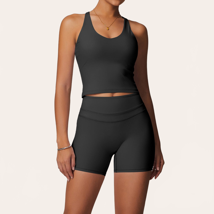 Su diseño sin costuras y su tejido altamente elástico se adaptan naturalmente a las curvas, alisan la cintura y realzan la línea de la espalda y las caderas. Un conjunto ideal para yoga, fitness o un estilo de vida activo.