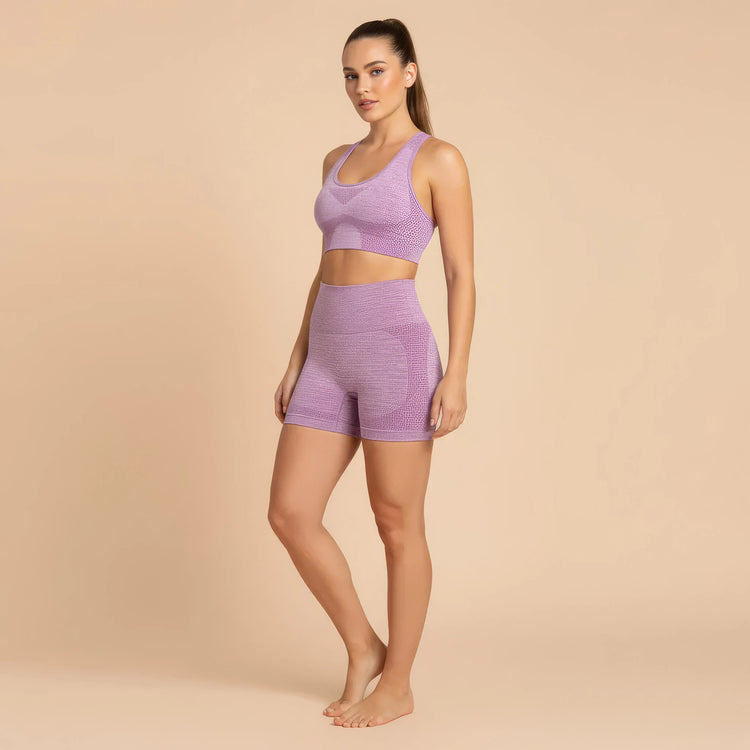 Su diseño sin costuras se adapta naturalmente a las curvas, alisa la cintura y resalta sutilmente realza los glúteos gracias a una estructura moldeadora inteligente. Un conjunto ideal para el entrenamiento como para un uso lifestyle activo.