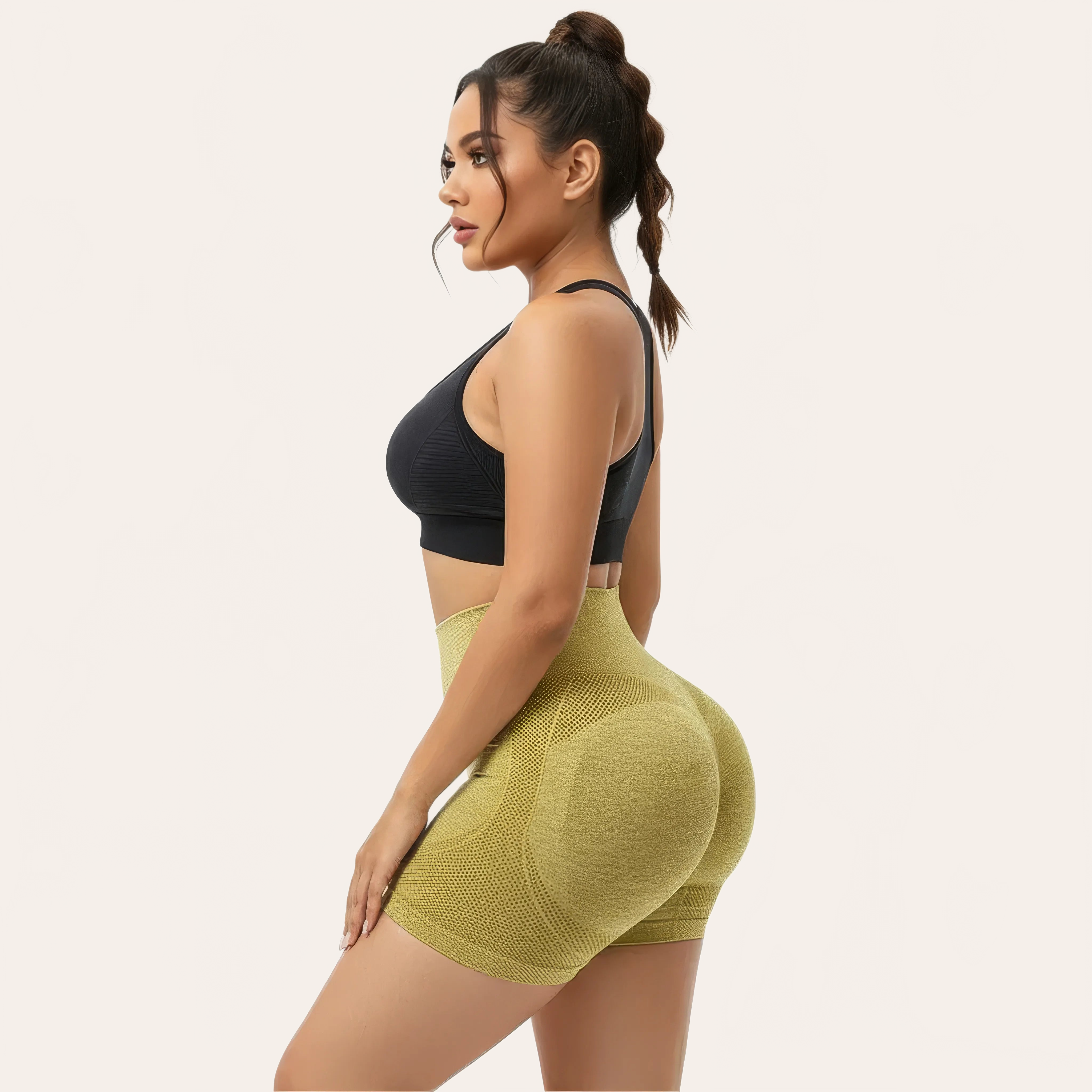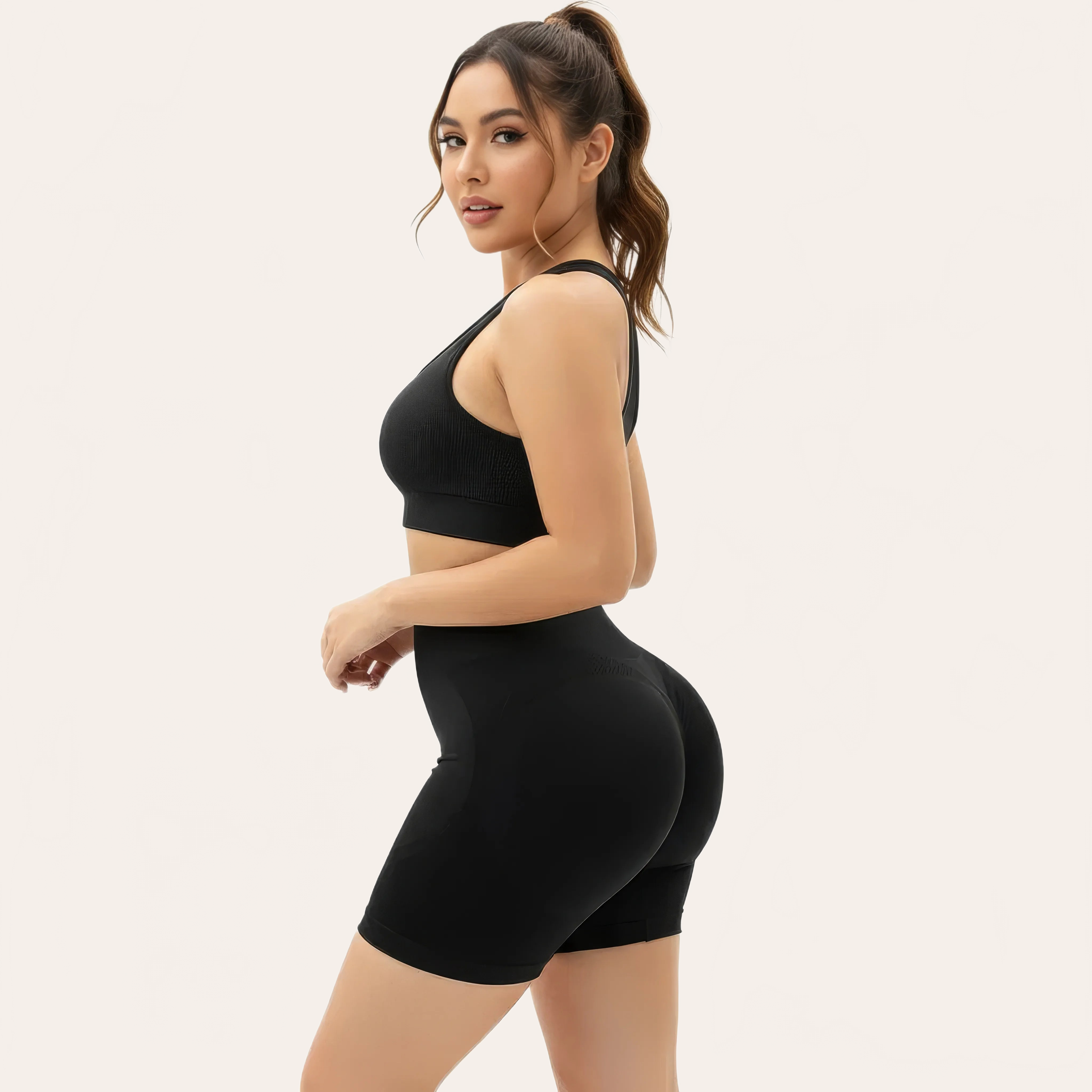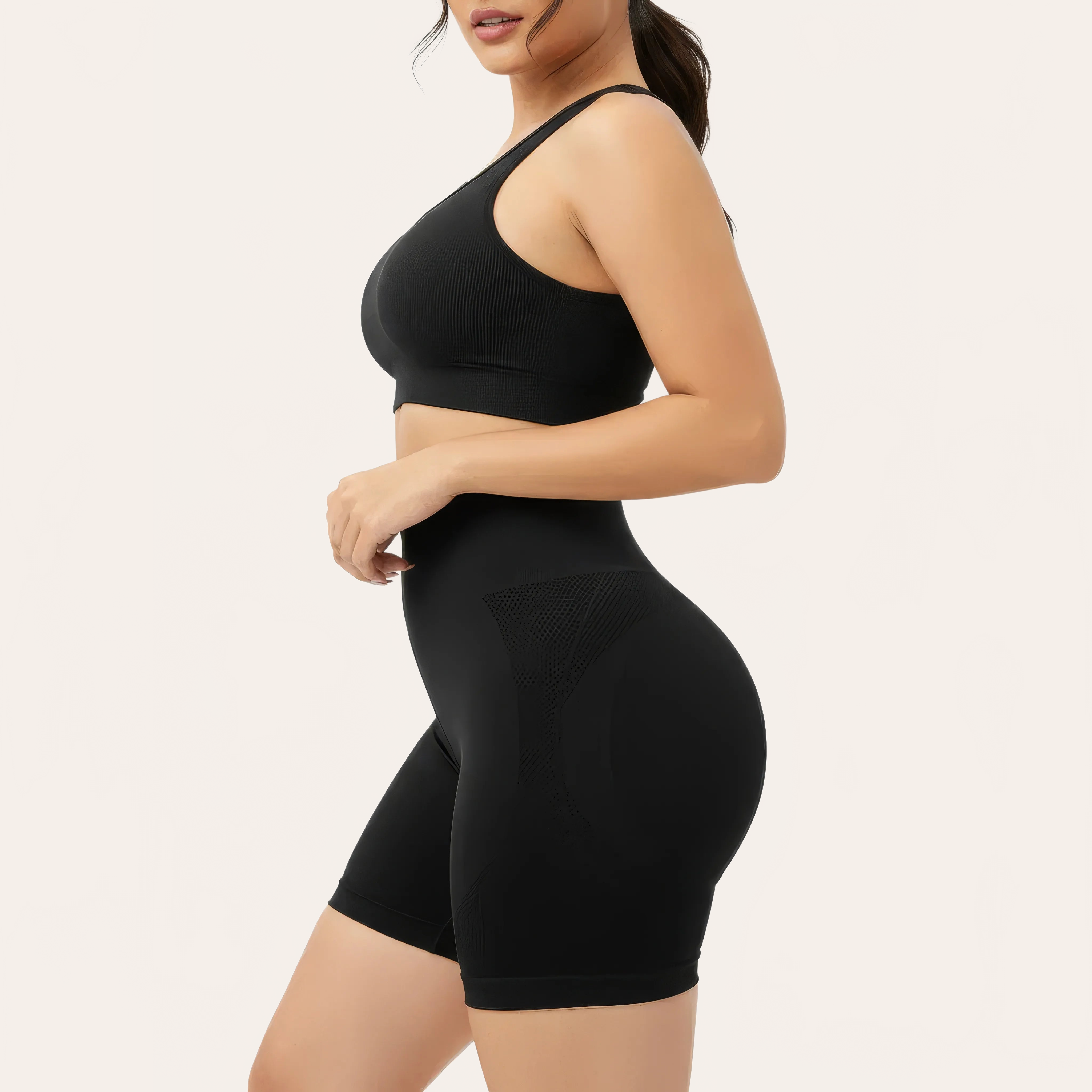 La vita alta assicura un sostegno stabile della pancia, mentre la struttura ergonomica a livello i fianchi e i glutei esaltano la silhouette senza compressione eccessiva.