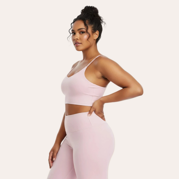 Un reggiseno da yoga con scollo a V elegante, pensato per unire femminilità, sostegno naturale e comfort seconda pelle. La ChicFlex™ FEMORA avvolge delicatamente il seno garantendo un sostegno equilibrato, ideale per lo yoga, la corsa leggera e le attività sportive quotidiane.
