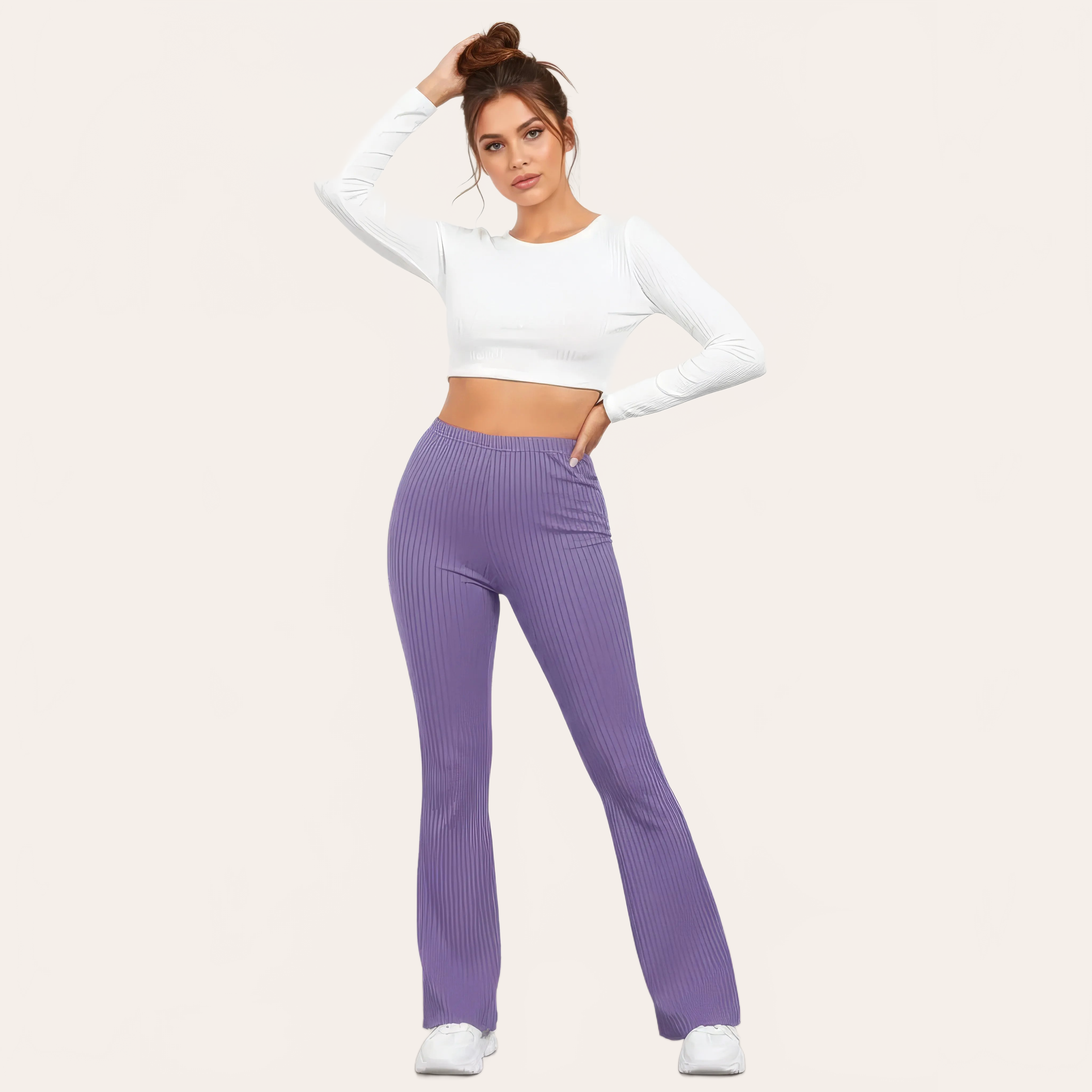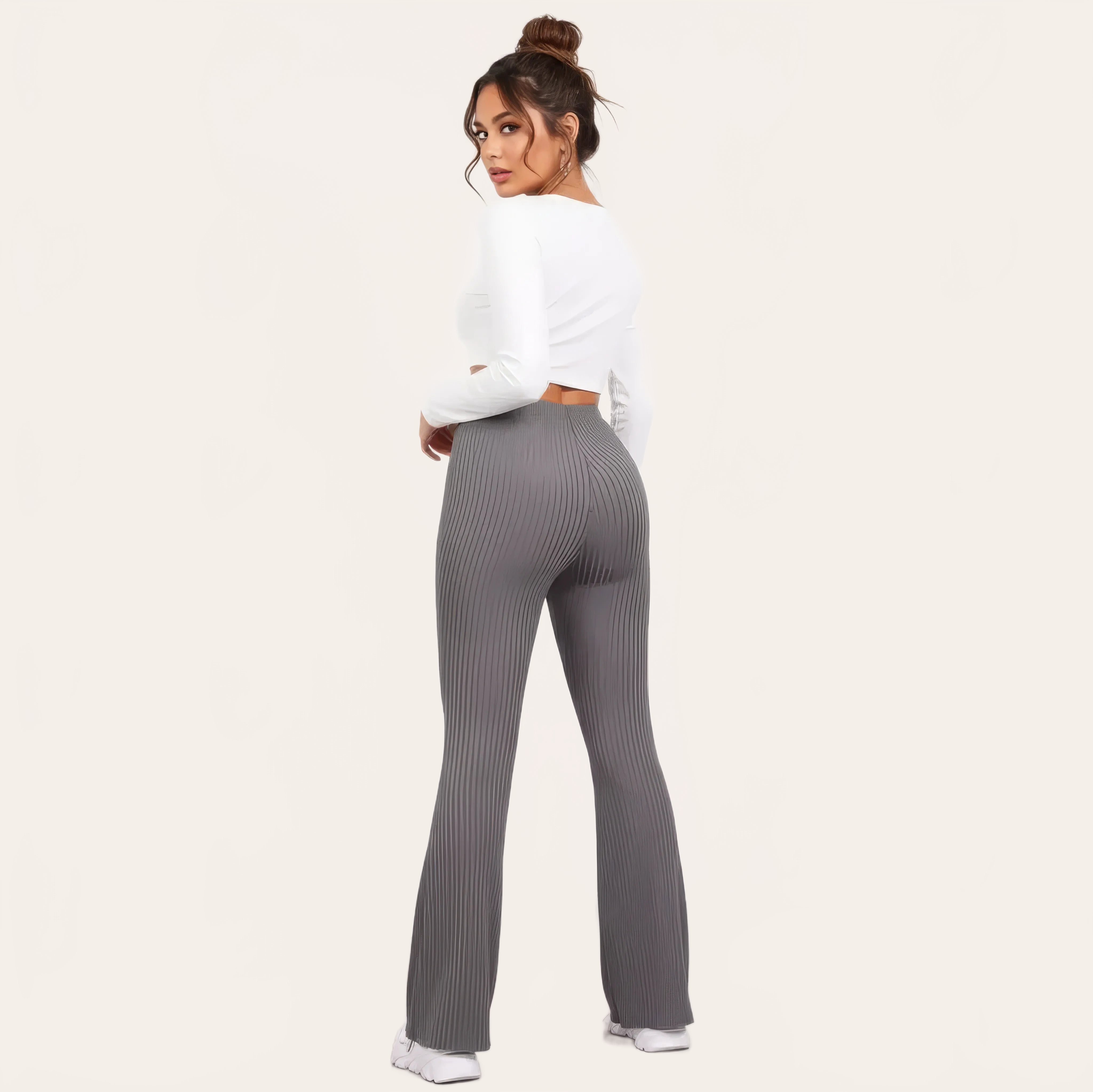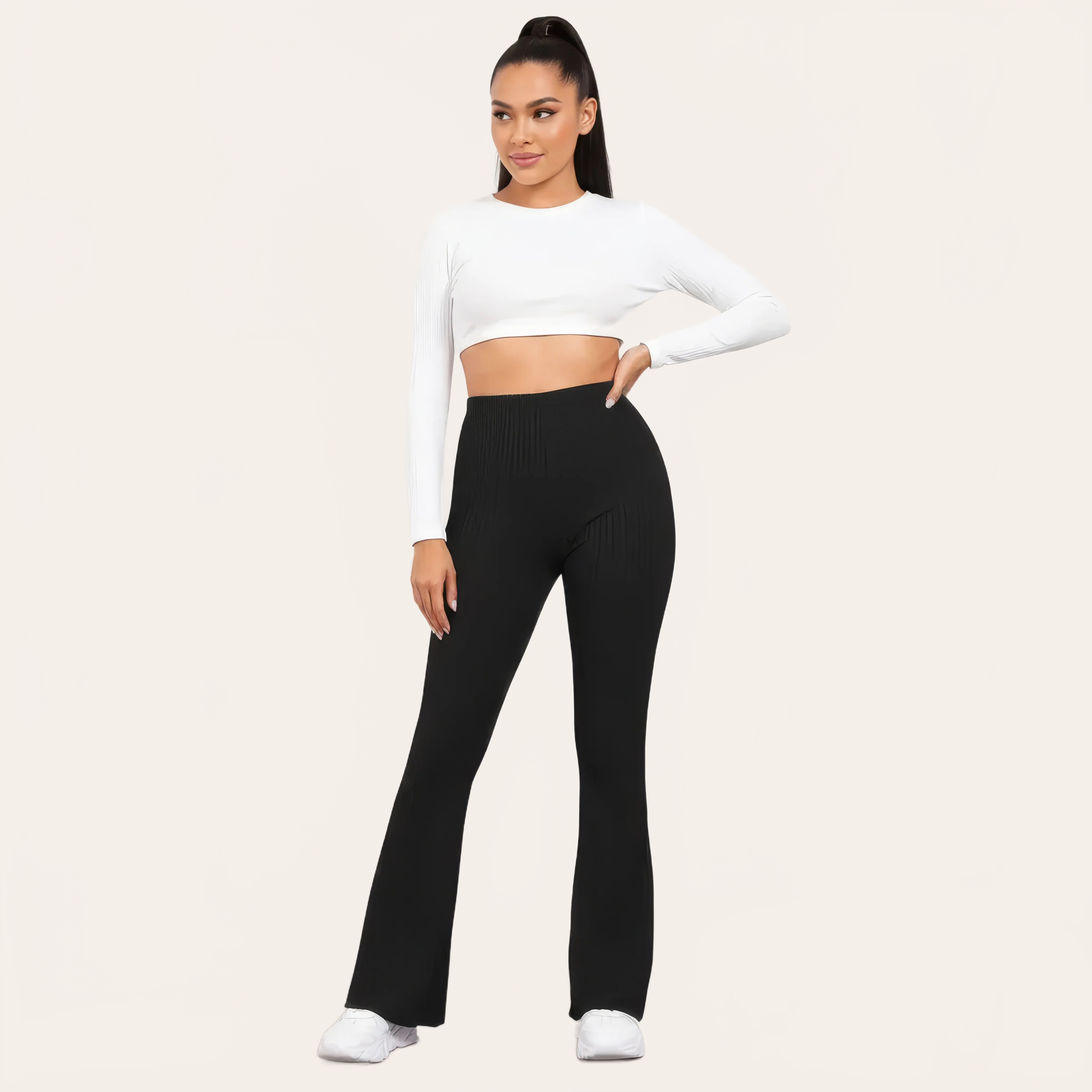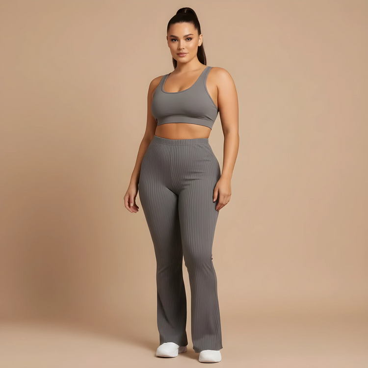 Un pantalone da yoga a vita alta dall’eleganza fluida, pensato per unire comfort, sostegno e stile. La sua maglia a coste affina visivamente la gamba mentre il taglio leggermente svasato dona una aspetto moderno e slanciato.