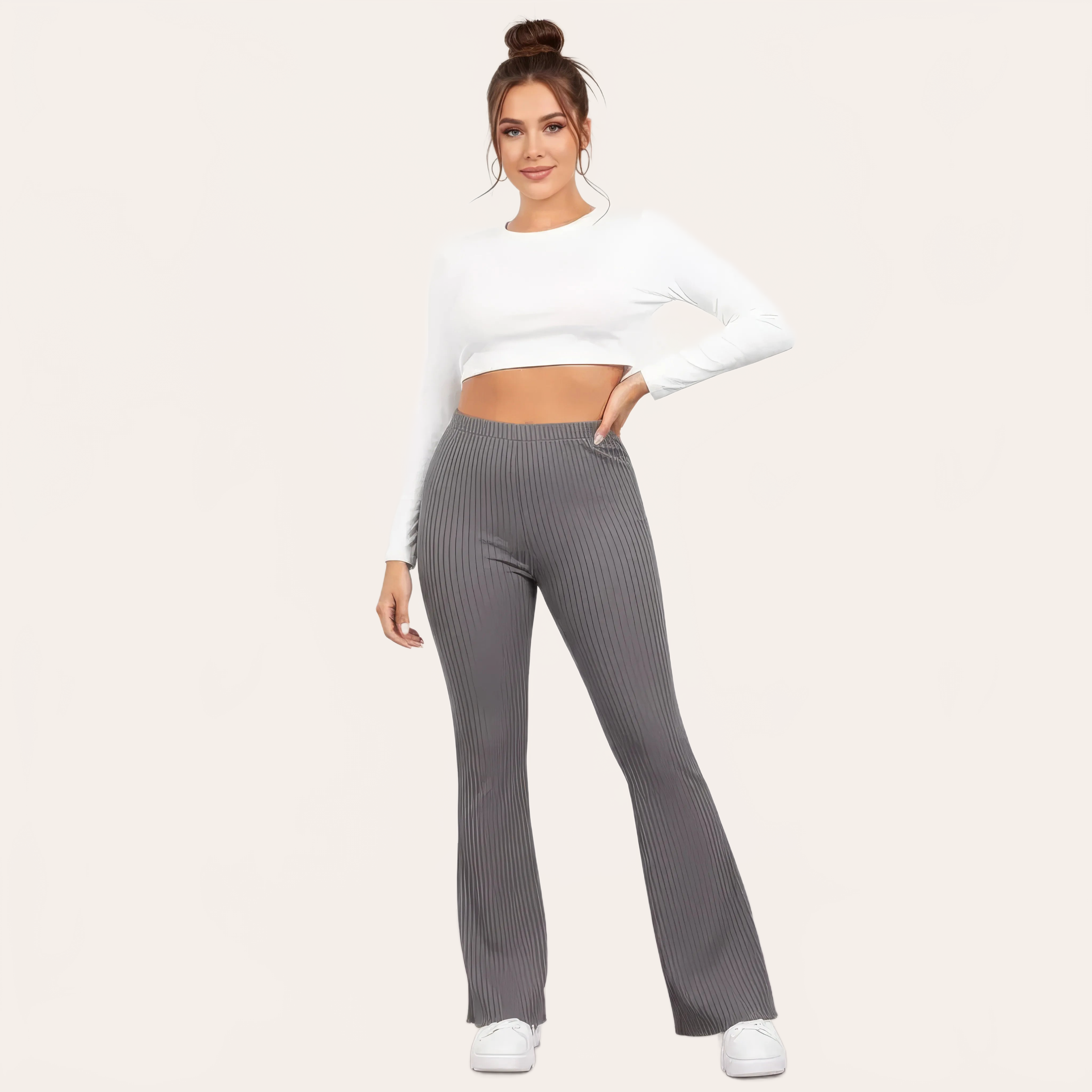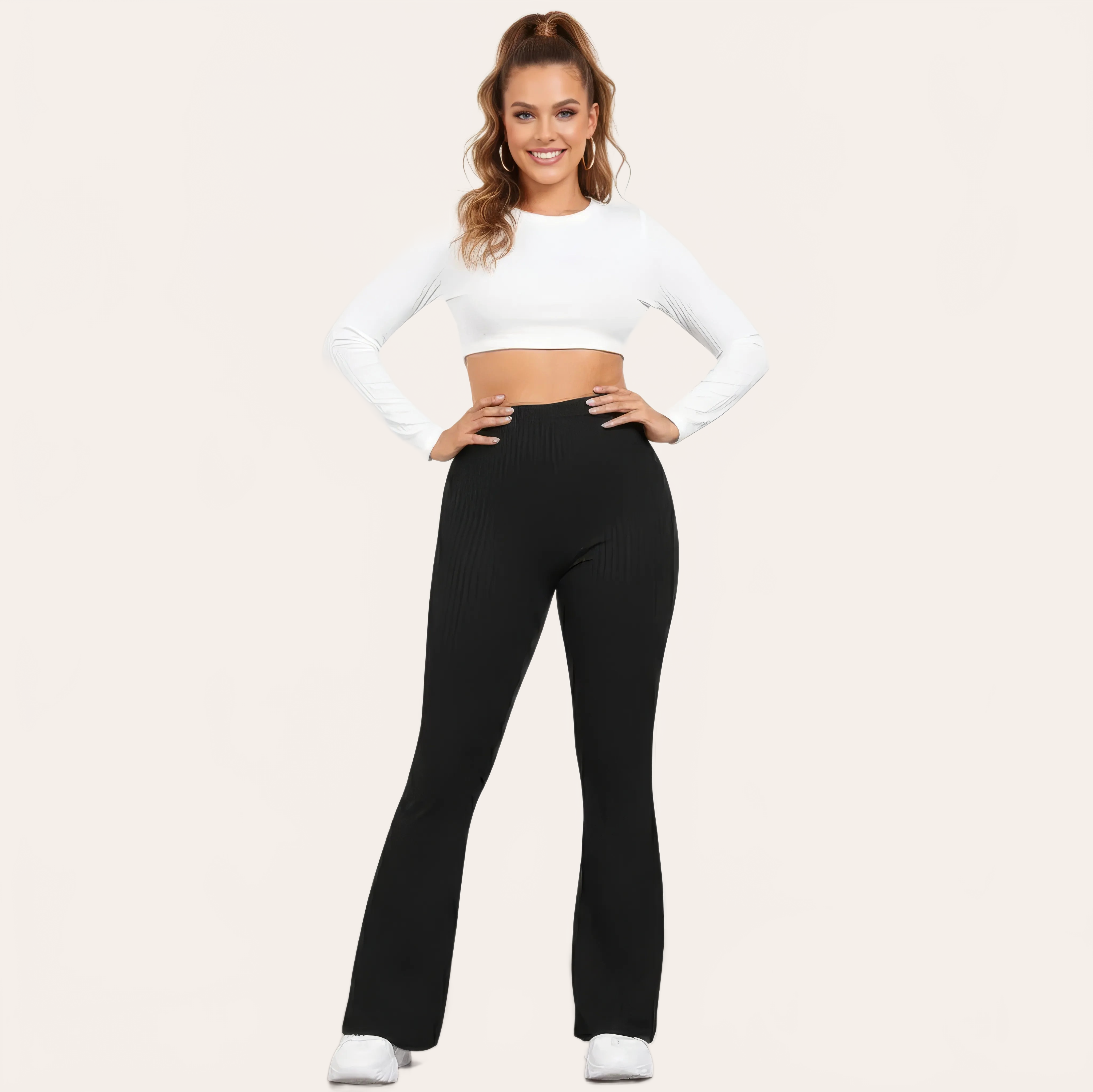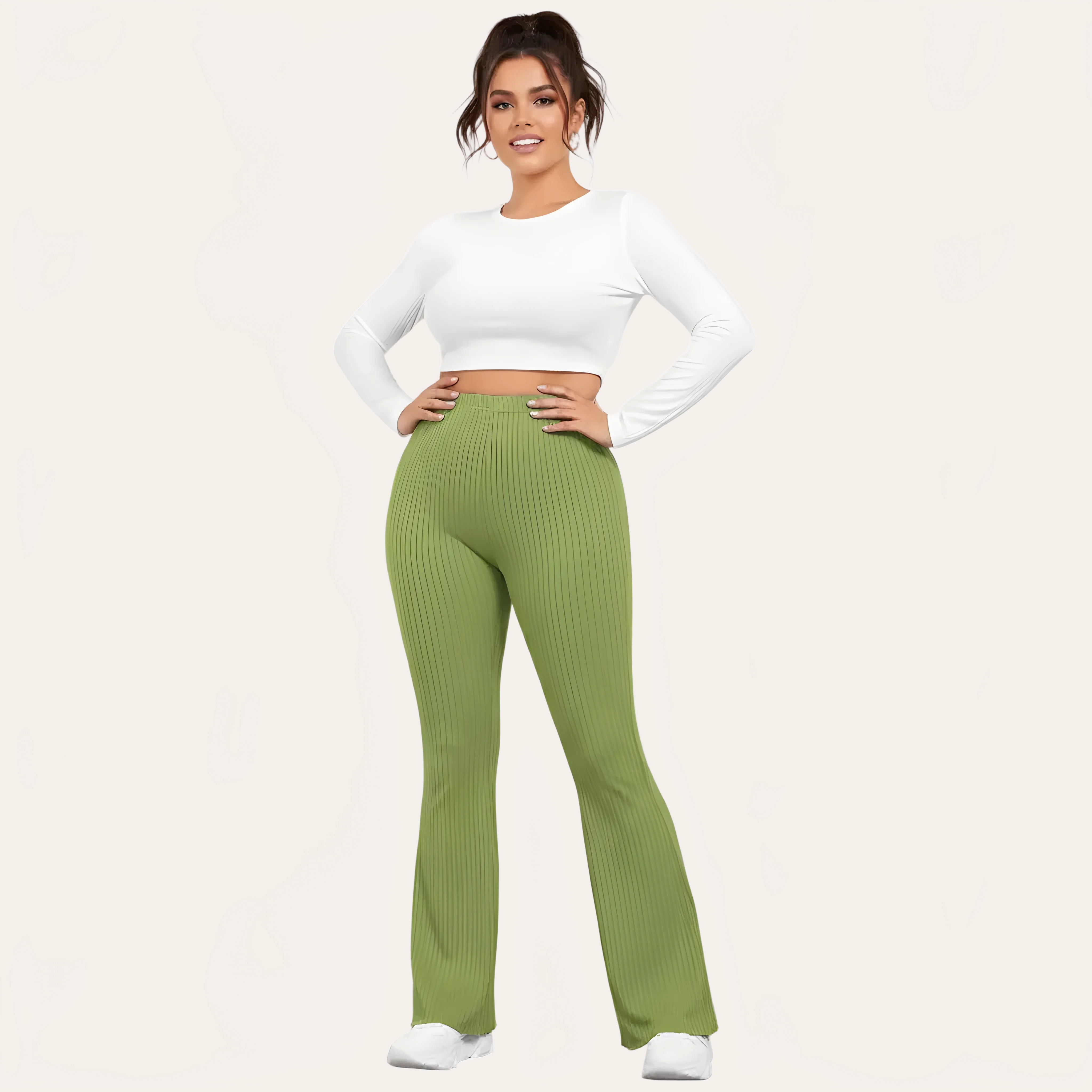 Un pantalone da yoga a vita alta dall’eleganza fluida, pensato per unire comfort, sostegno e stile. La sua maglia a coste affina visivamente la gamba mentre il taglio leggermente svasato dona una aspetto moderno e slanciato.