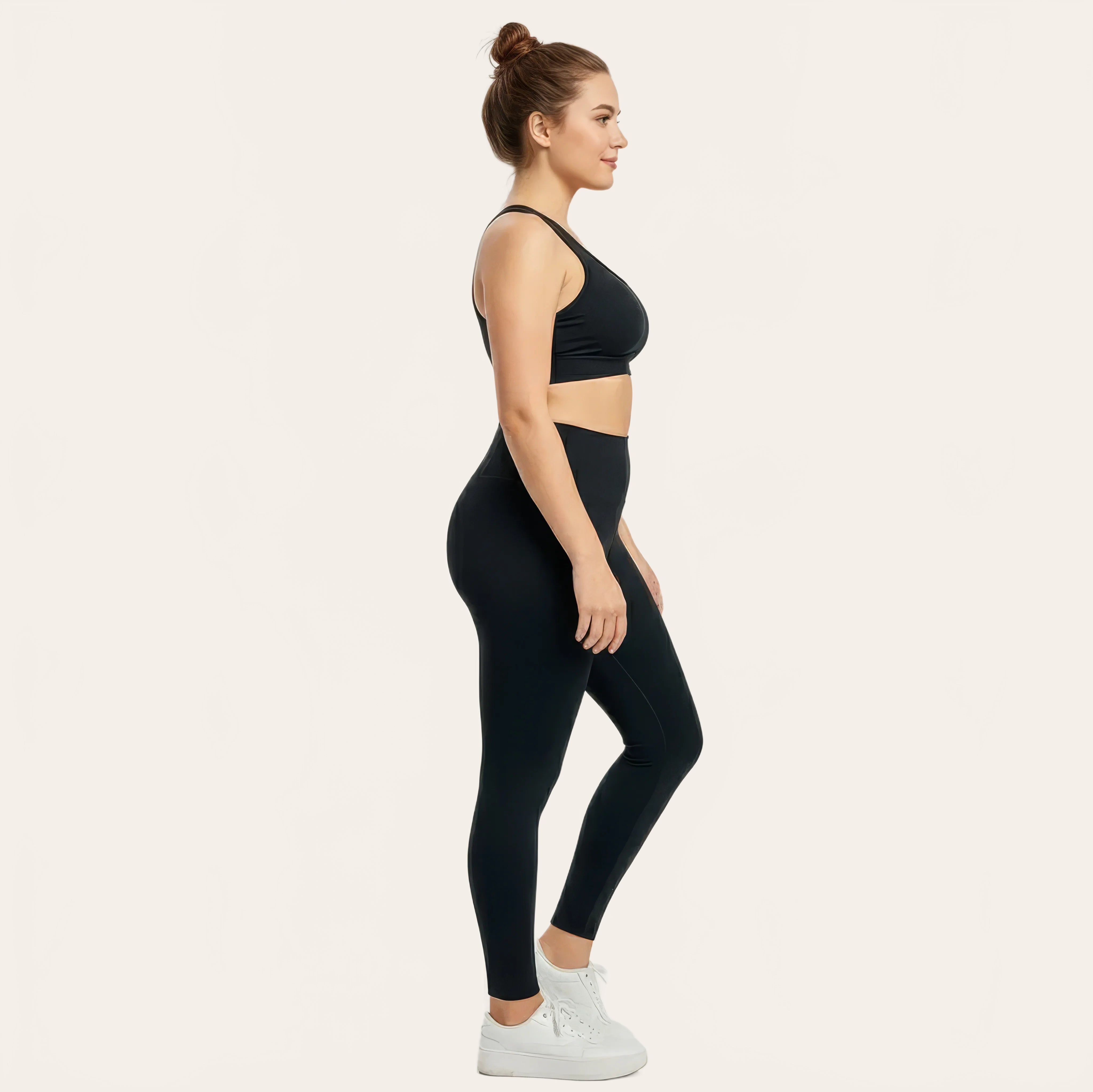 La vita alta struttura delicatamente la silhouette e sostiene la pancia senza compressione eccessivo, mentre il taglio aderente affina visivamente le gambe per un effetto liscio e elegante.
