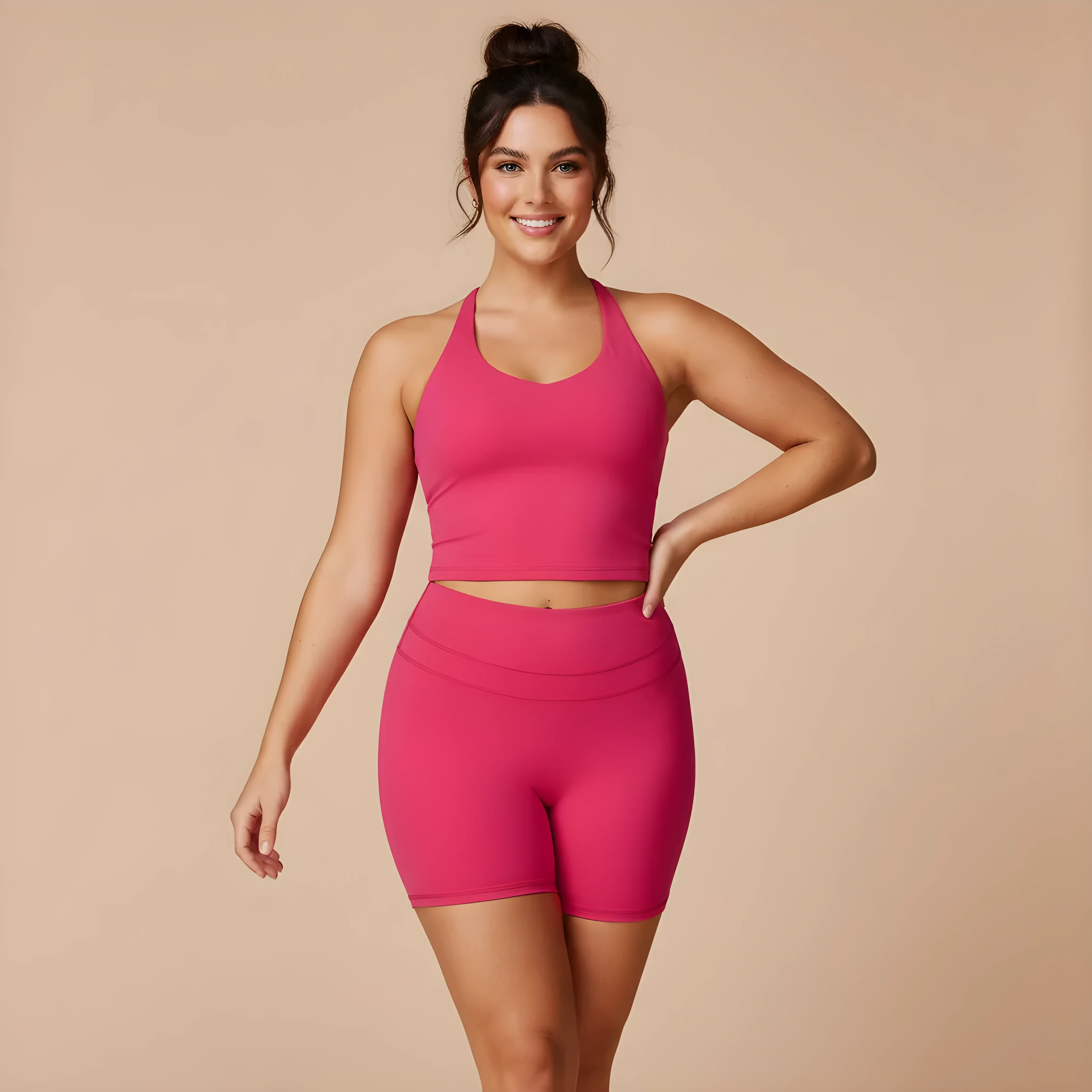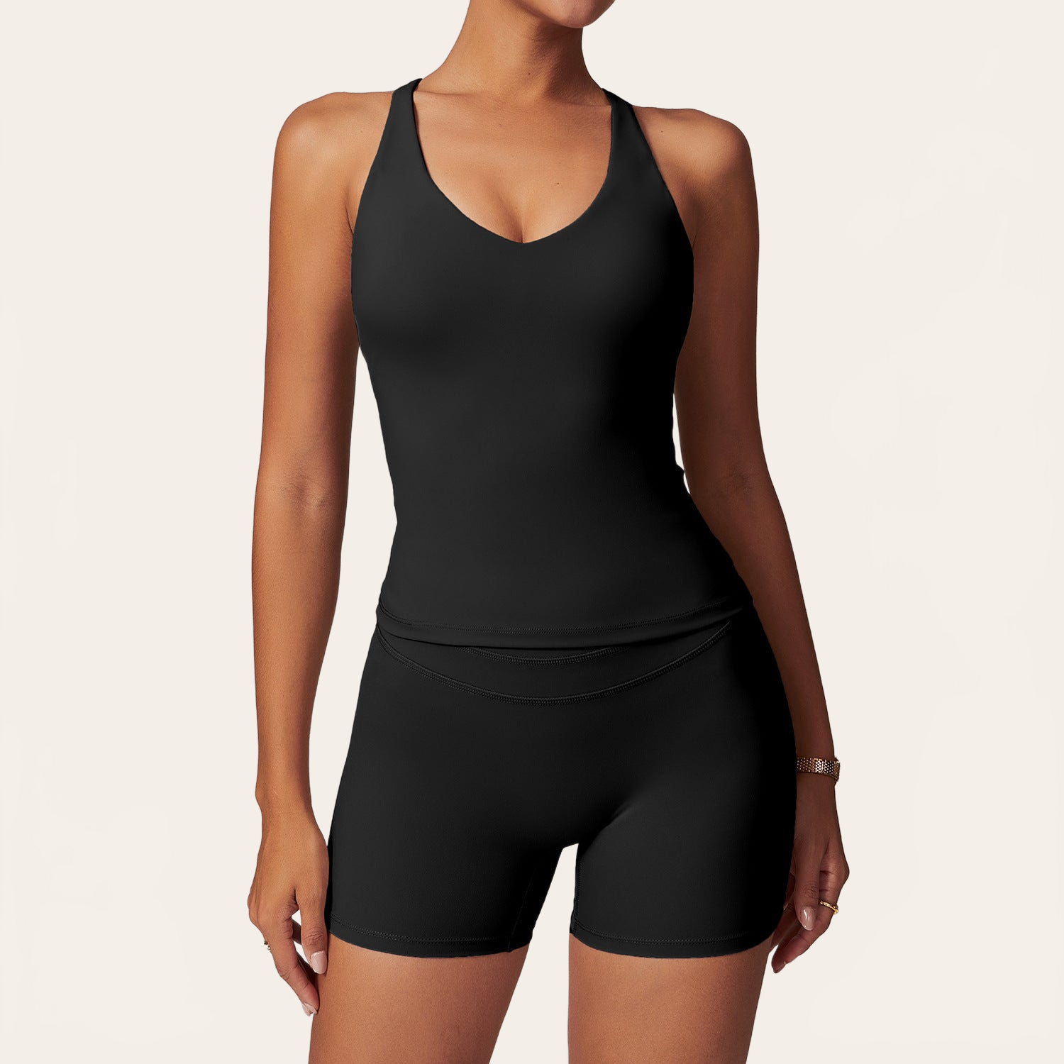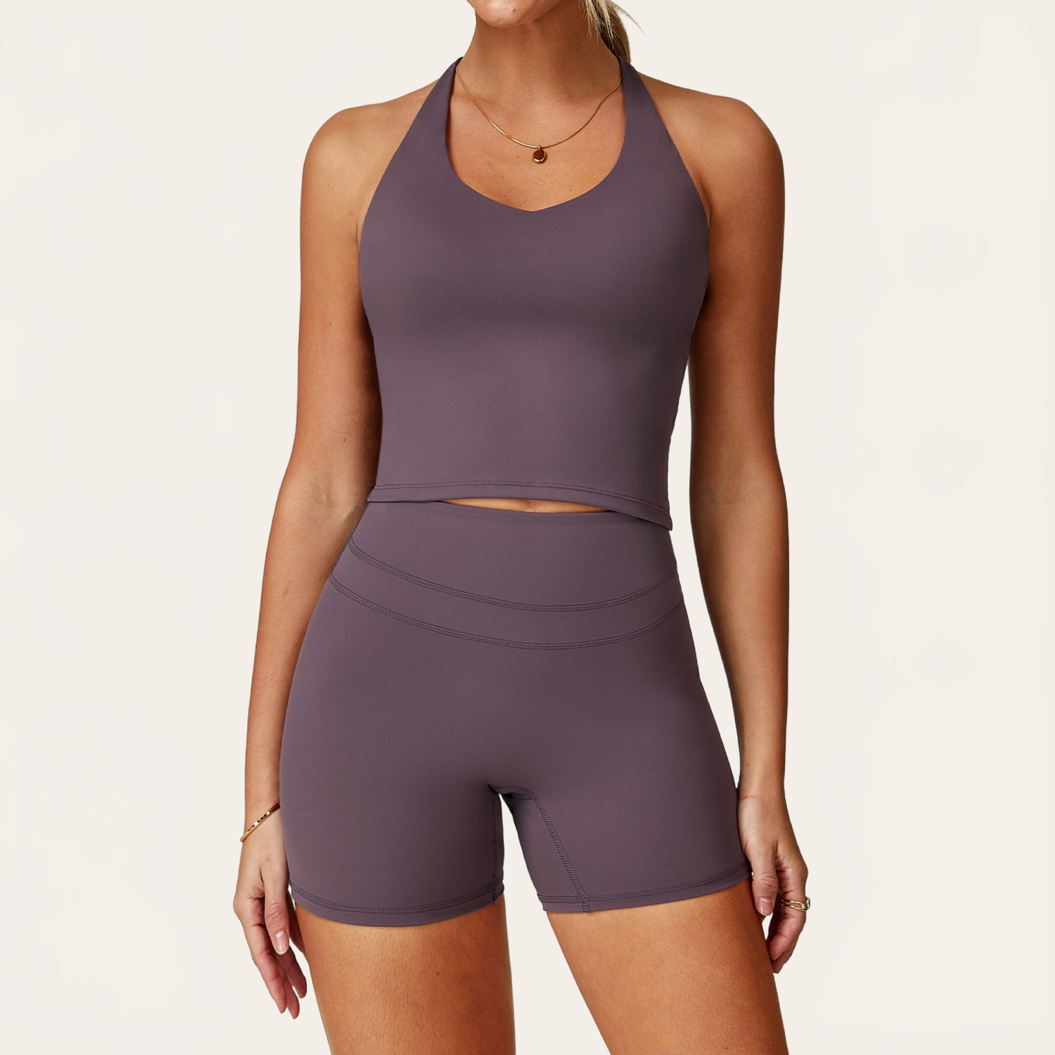 La sua costruzione seamless e il tessuto altamente elastico seguono naturalmente le curve, levigano la vita e valorizzano la linea della schiena e dei fianchi. Un insieme ideale per yoga, fitness o un uso lifestyle attivo.