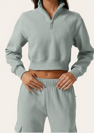 Il set FEMORA SculptFit™ abbina un top cropped a maniche lunghe e un pantalone a vita alta a taglio ampio per una silhouette moderna, strutturata e naturalmente snellita. Pensato per comfort come per lo stile, questo completo offre un aspetto elegante e casual.
